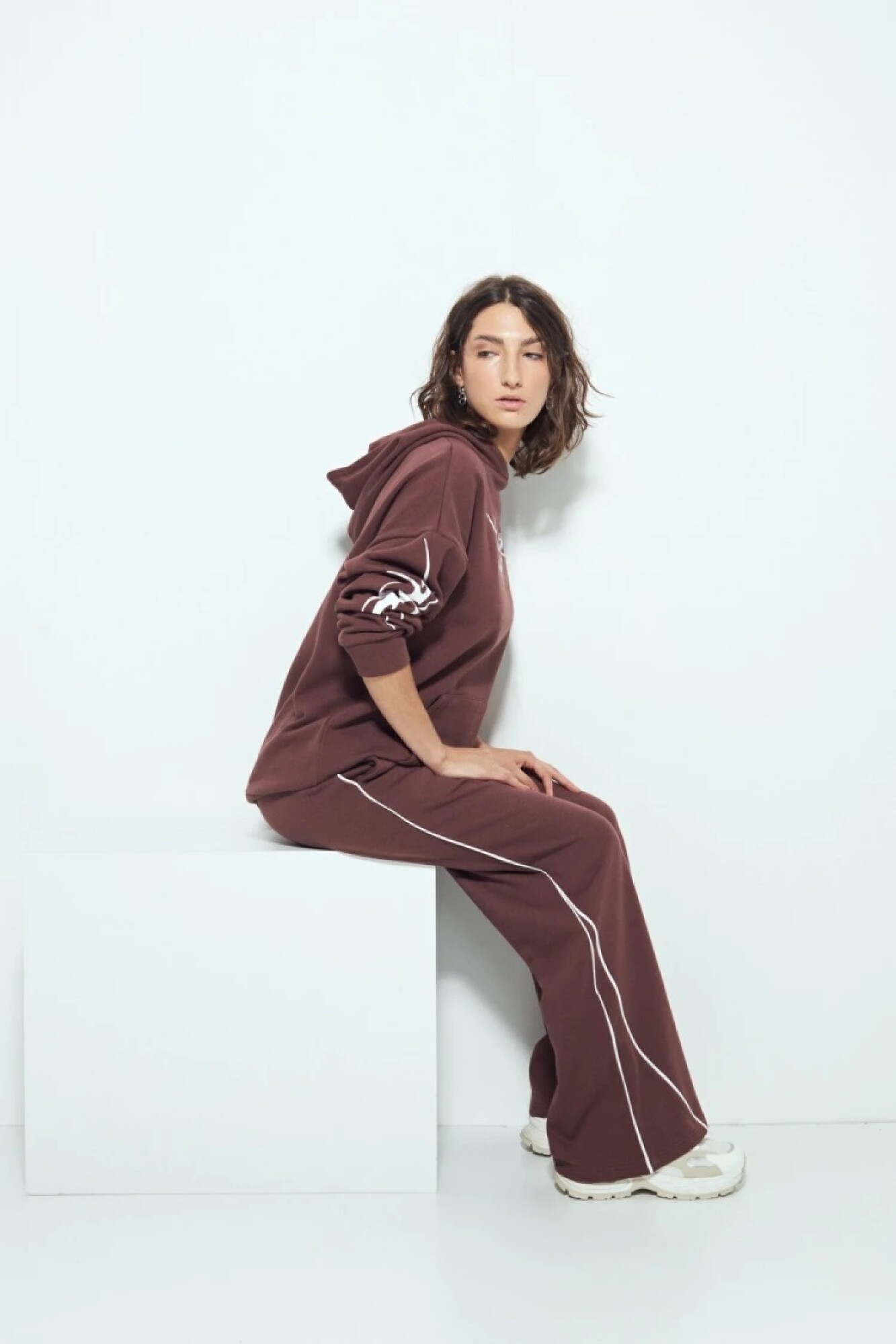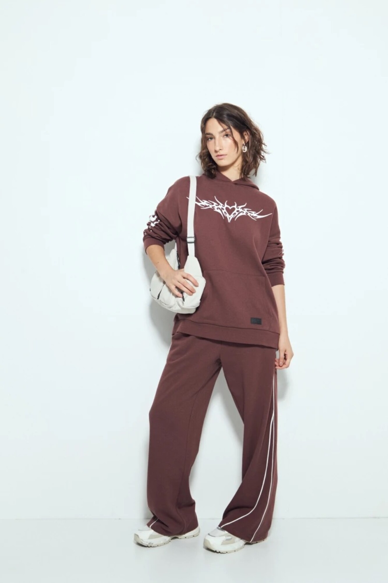 Pantalón de silueta amplia con caída relajada, diseñado para un look urbano y en tendencia. El fit wide leg aporta movimiento y comodidad, mientras que el detalle de líneas laterales suma un guiño deportivo que eleva la prenda y la vuelve clave para estilismos athleisure. La cintura elastizada garantiza un calce confortable y versátil, ideal tanto para looks relajados como para combinaciones más cancheras de uso diario.