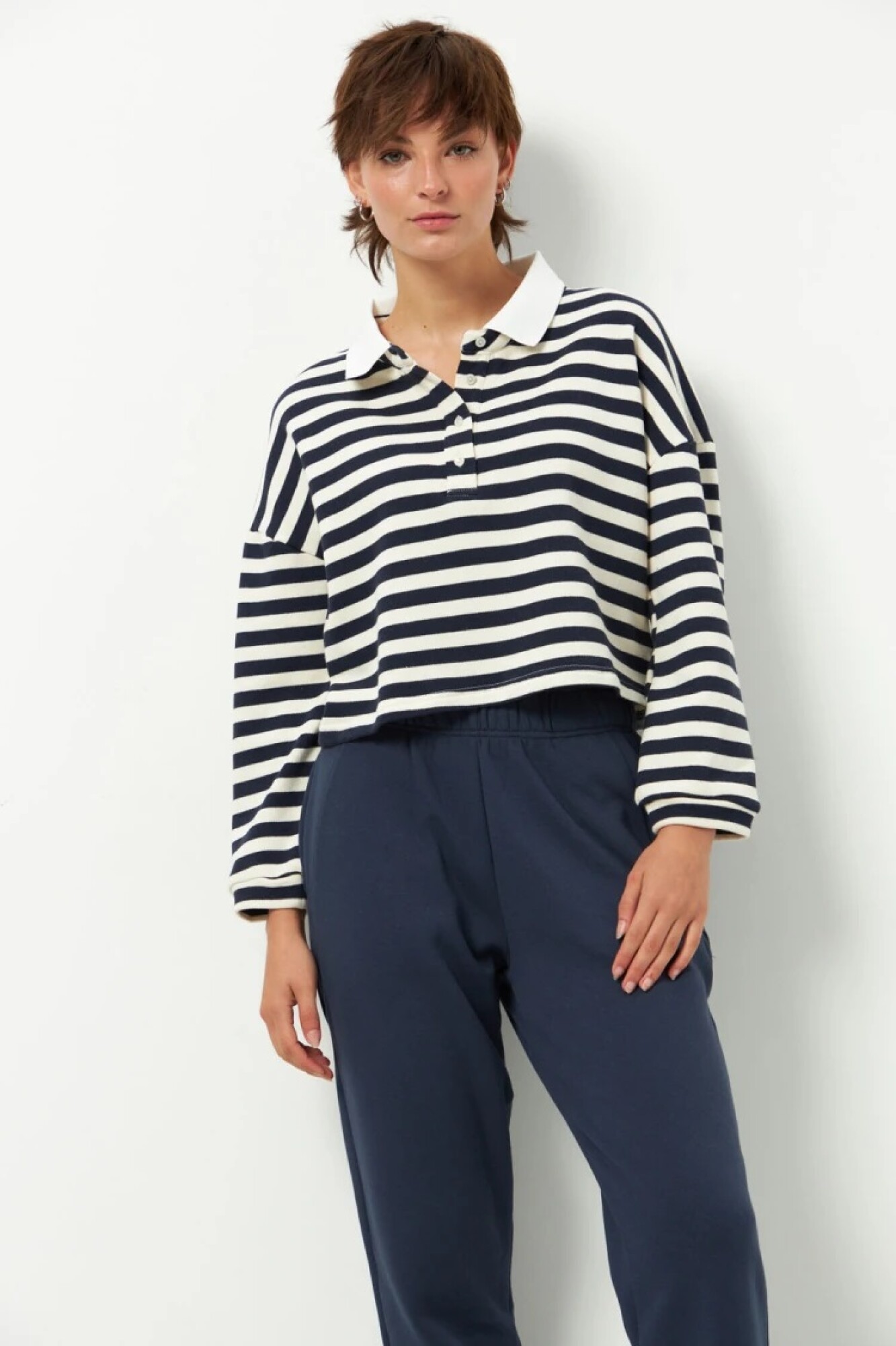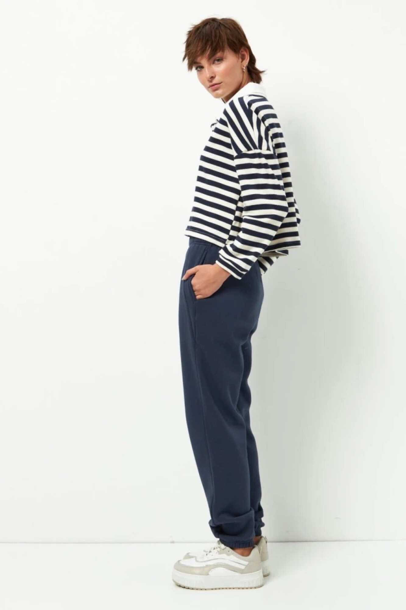 $ 952 Babucha deportiva de algodón y felpa por dentro. Cuenta con bolsillos en los laterales y elástico en la cintura y puños.