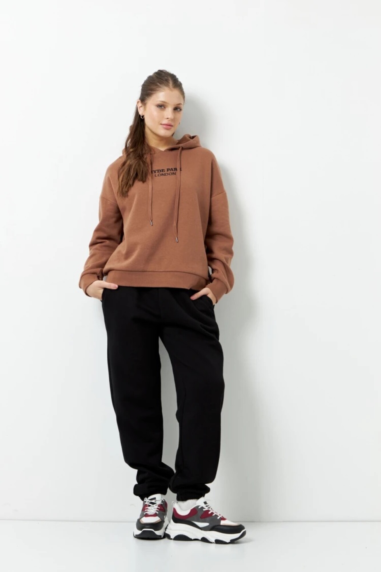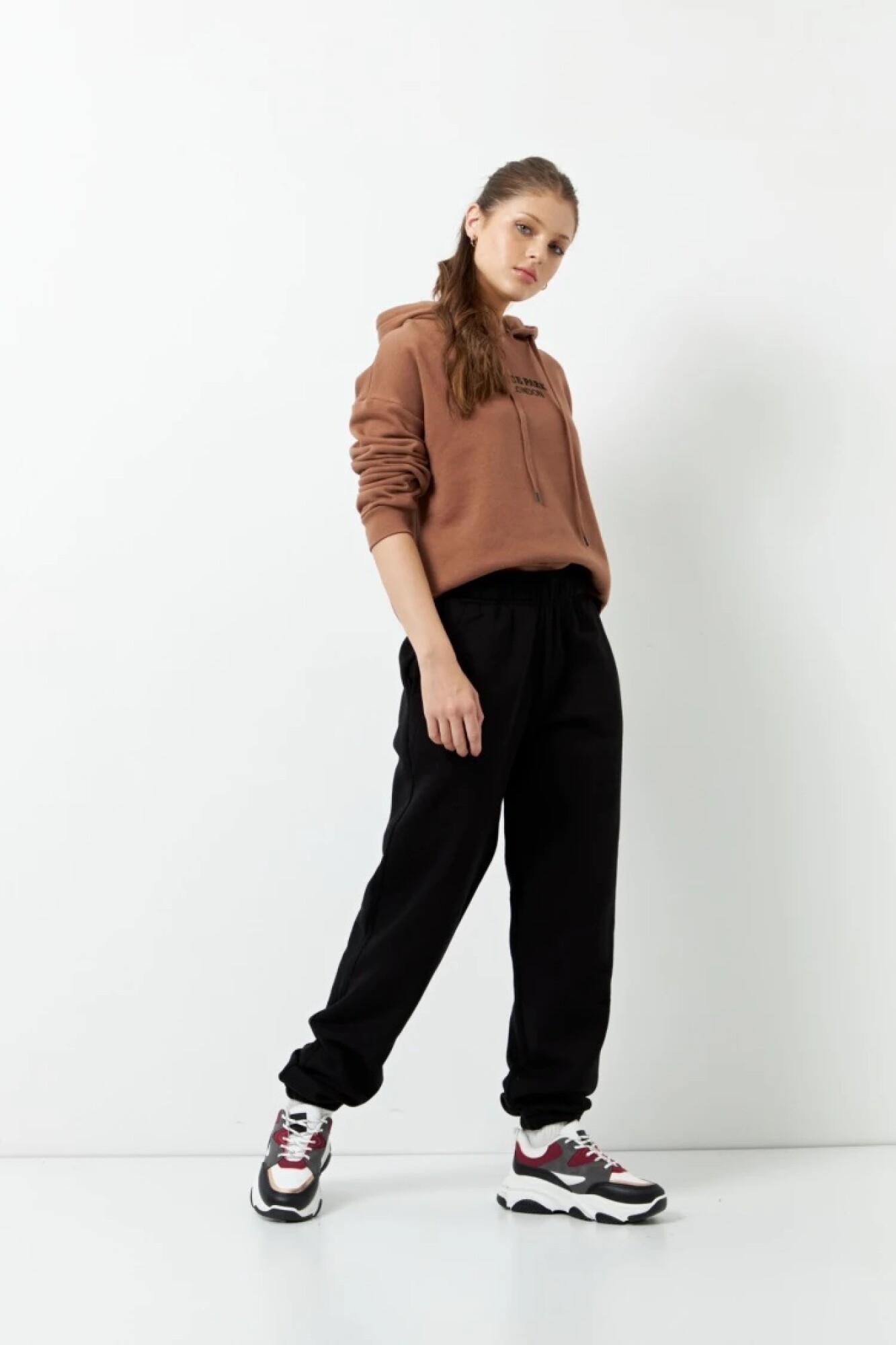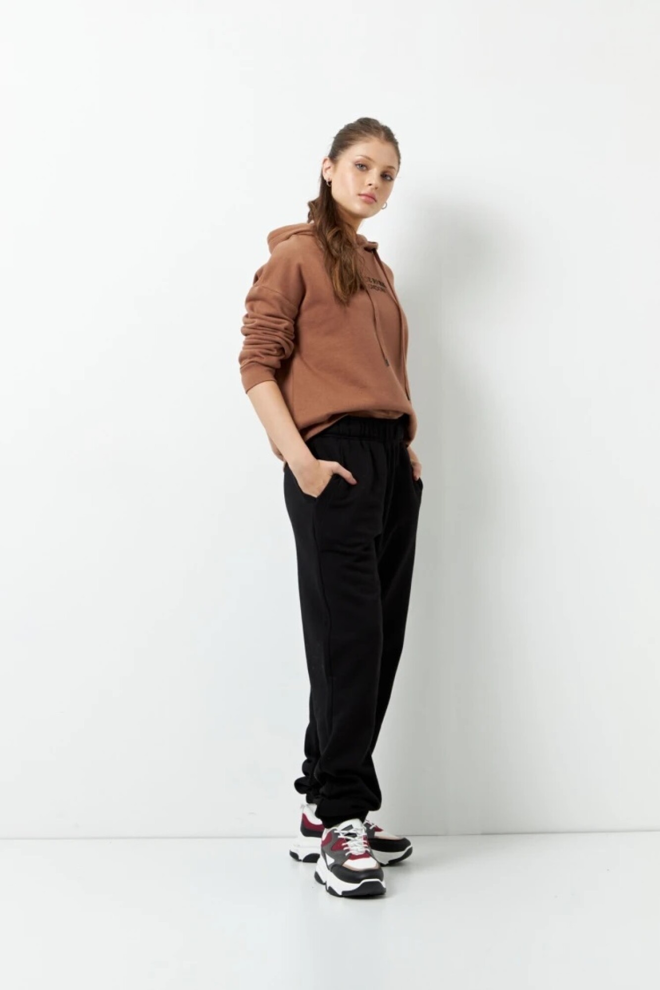 $ 952 Babucha deportiva de algodón y felpa por dentro. Cuenta con bolsillos en los laterales y elástico en la cintura y puños.