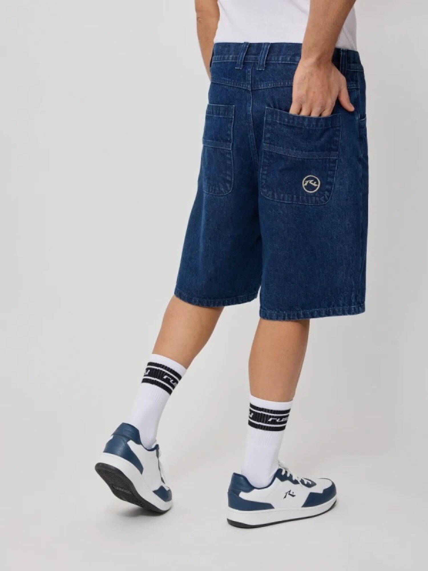 $ 1.592 Bermuda recta de jeans bolsillos grandes.