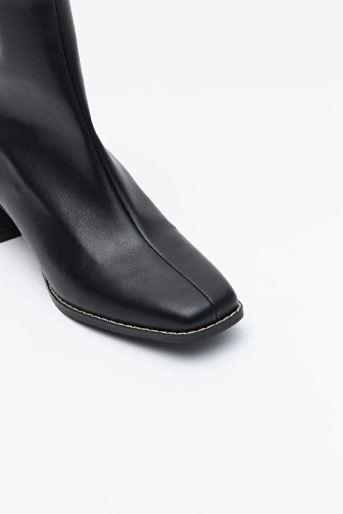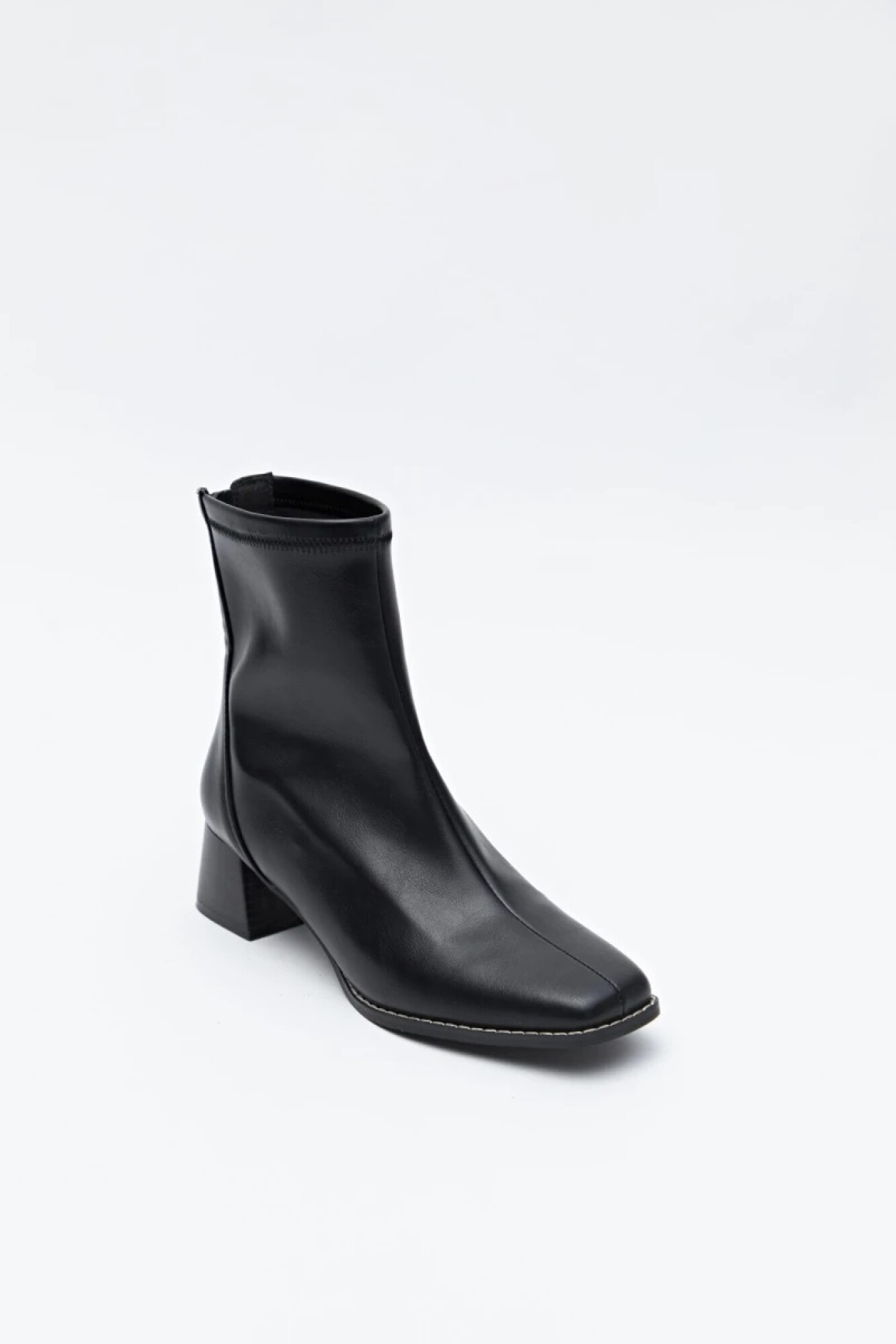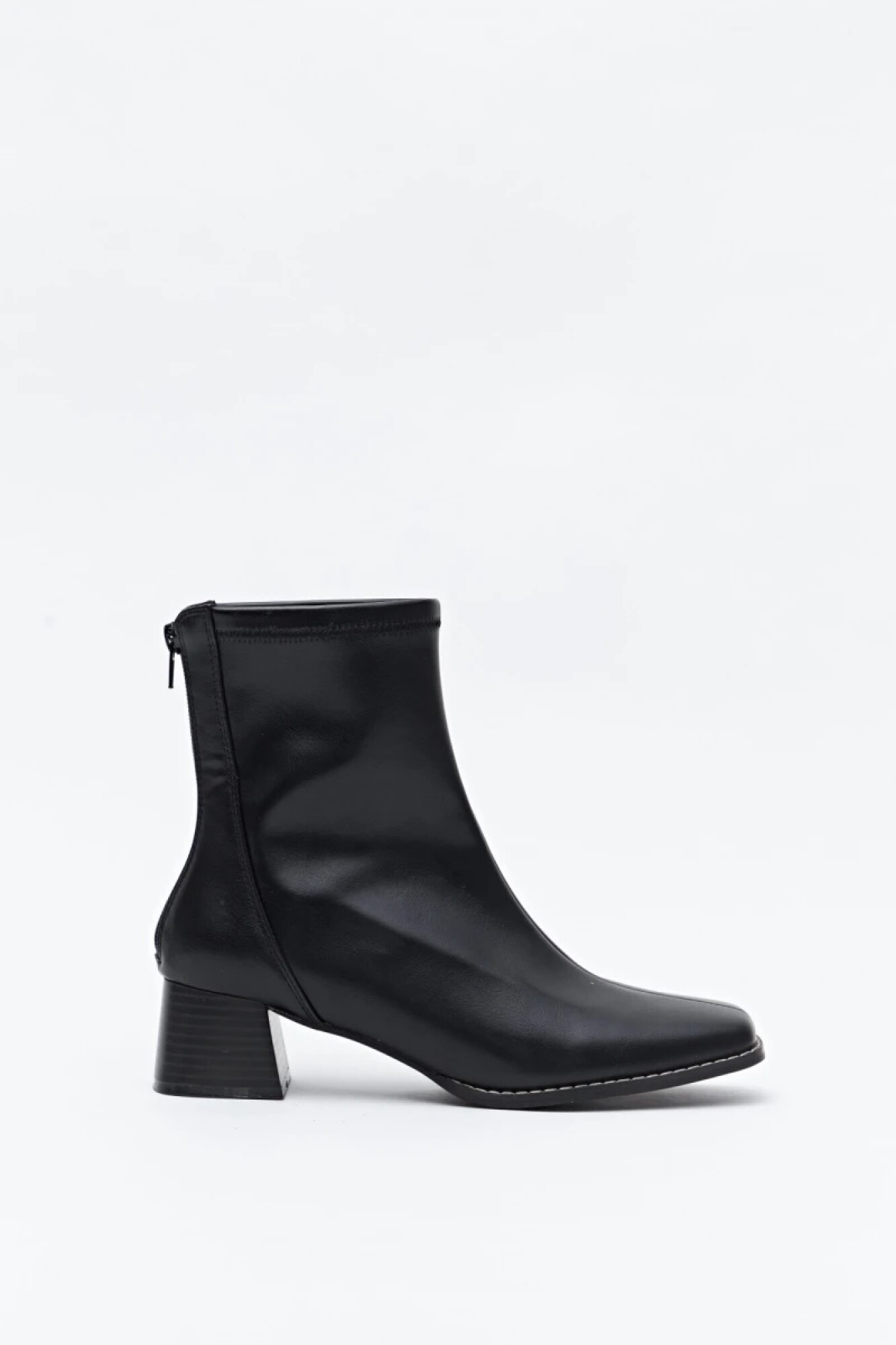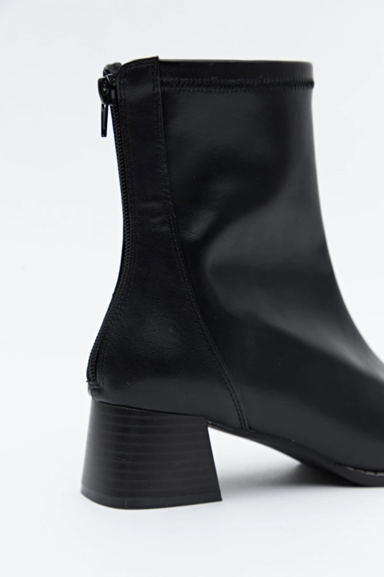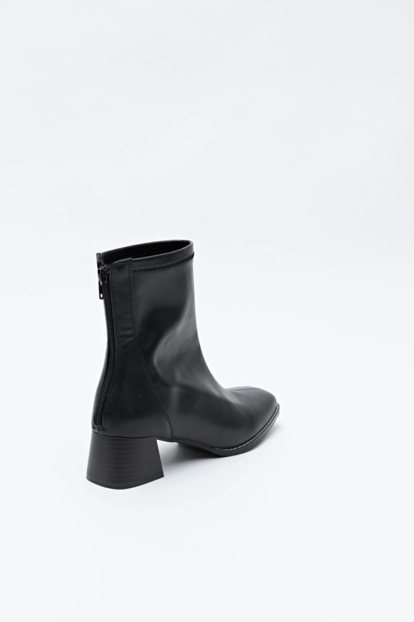 Bota de caña baja de diseño limpio y contemporáneo, confeccionada en poliuretano de acabado liso y estructura firme. Presenta puntera levemente cuadrada, taco medio geométrico y silueta depurada que aporta elegancia y versatilidad. En sintonía con las tendencias de calzado 2026, las botas de líneas simples, volúmenes definidos y estética atemporal se posicionan como un esencial del guardarropa urbano, clave para elevar cualquier look.