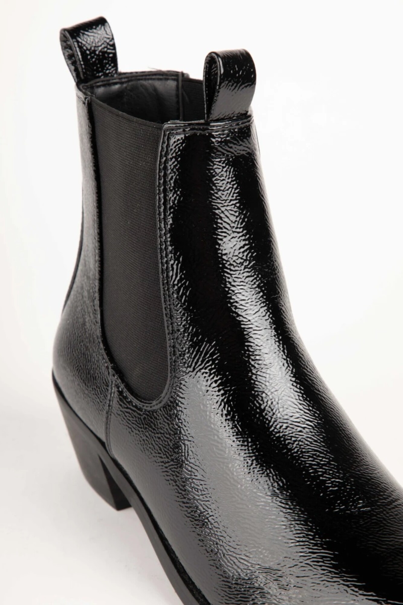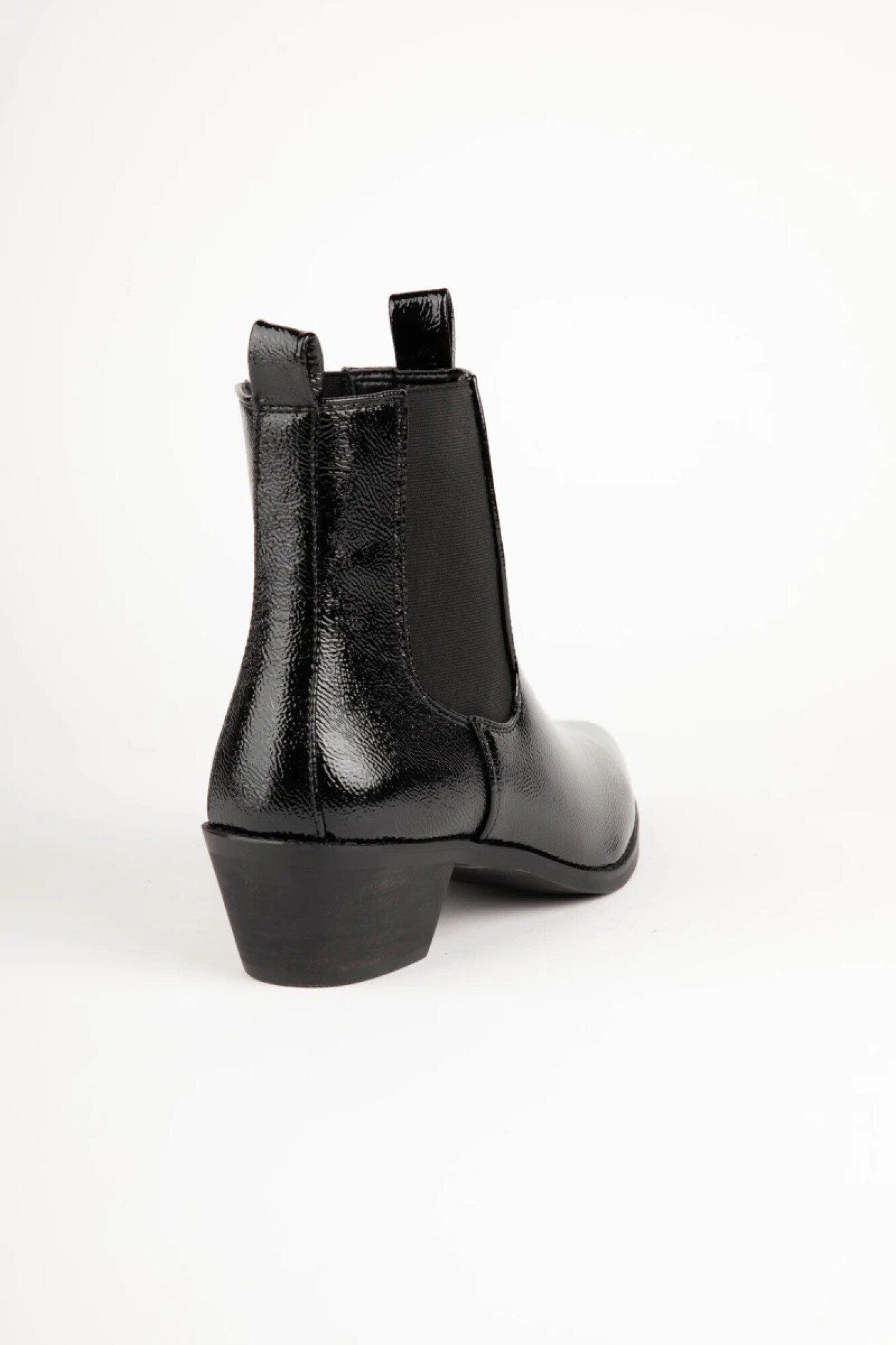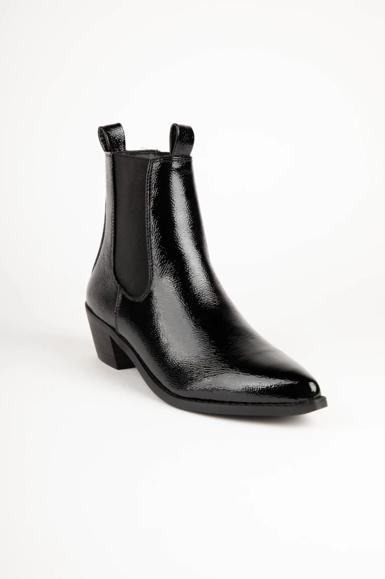 $ 2.392 Botas tipo texanas en punta de caña baja, cu4entan con pieza elastizada en los laterales y taco de 5cm de alto.