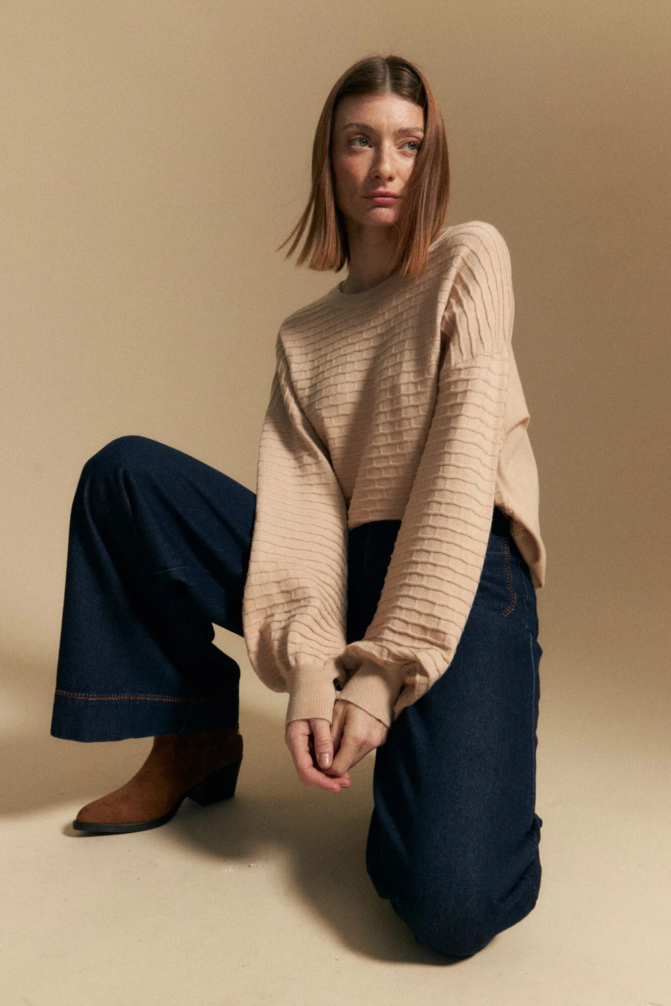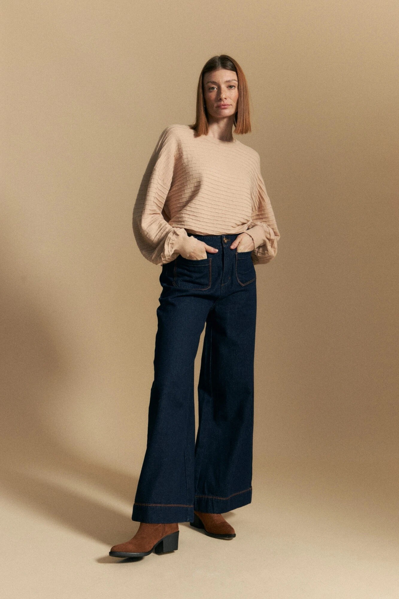 Buso de mangas abullonadas con textura tejida en relieve que aporta dimensión y un detalle diferencial. Su silueta amplia se equilibra con puños elastizados, generando volumen controlado y un calce cómodo. Ideal para sumar carácter a looks de día u office, combinándolo con denim o pantalones sastreros para un estilismo actual y sofisticado.