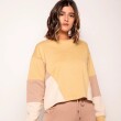 Buzo de manga larga y cuello a la base. En tela deportiva de diseño color block asimétrico en el frente y en las mangas.