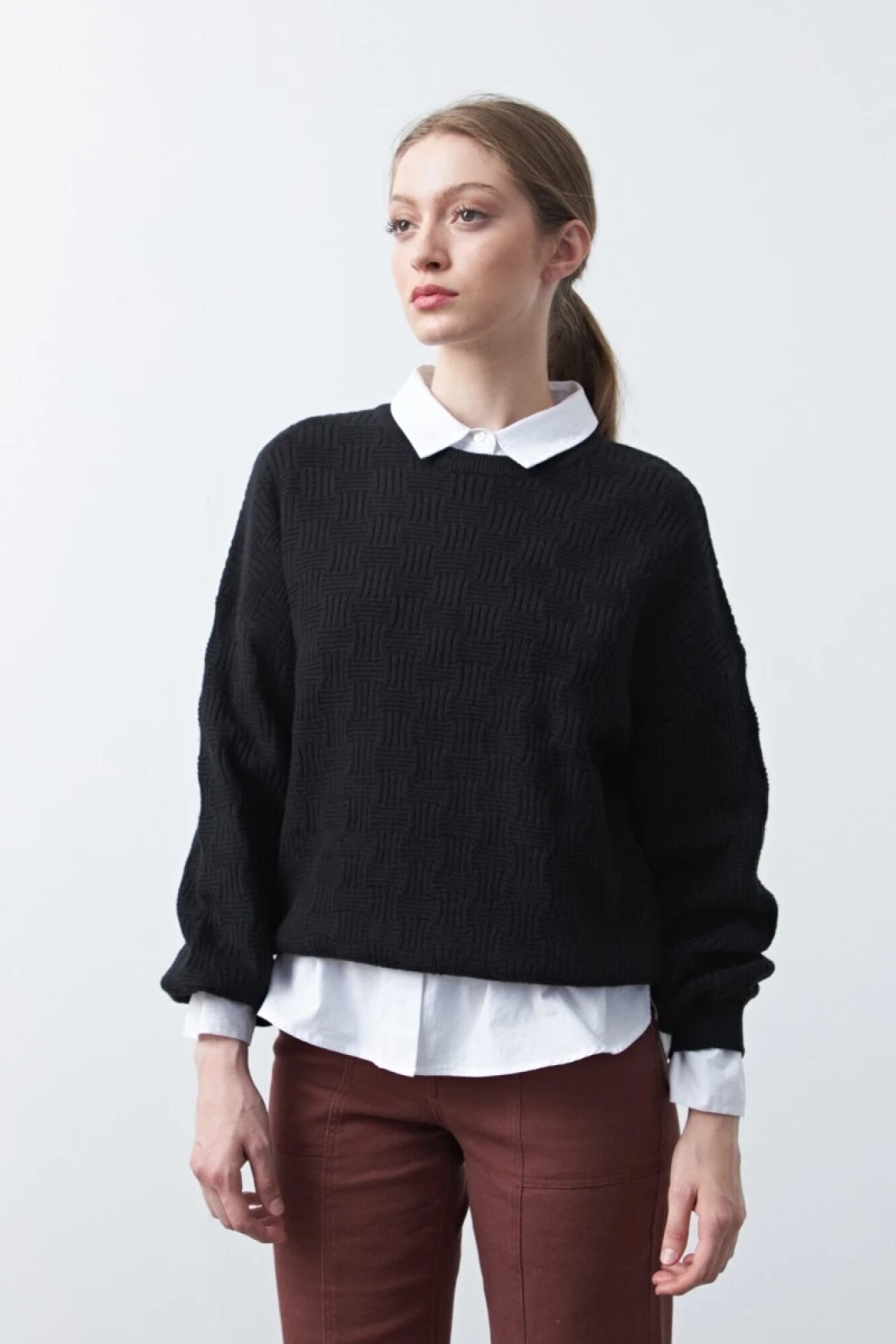 Buzo tramado, de diseño clásico y textura protagonista que aporta profundidad visual y un acabado cuidado. El tejido con relieve genera un efecto sutil pero distintivo, elevando la prenda más allá de un básico tradicional. De calce cómodo y líneas limpias, es una opción versátil que funciona tanto en looks urbanos como en combinaciones más prolijas, ideal para sumar interés al outfit sin perder elegancia.