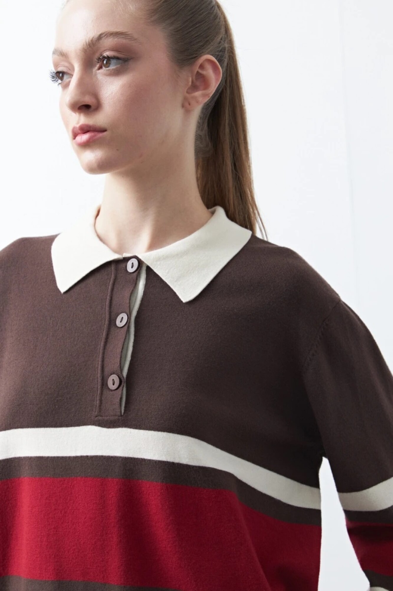 Buzo a rayas, de diseño clásico y espíritu atemporal inspirado en el estilo navy, una estética que nace en el vestuario marinero y se consolida en la moda como sinónimo de elegancia relajada y funcionalidad. Su patrón de rayas horizontales aporta equilibrio visual y un guiño tradicional que se reinterpreta en clave contemporánea, ideal para looks urbanos prolijos o propuestas más casuales. El cuello tipo polo con botones suma un detalle distintivo que refuerza su carácter versátil y lo convierte en una pieza clave para elevar cualquier look sin esfuerzo.