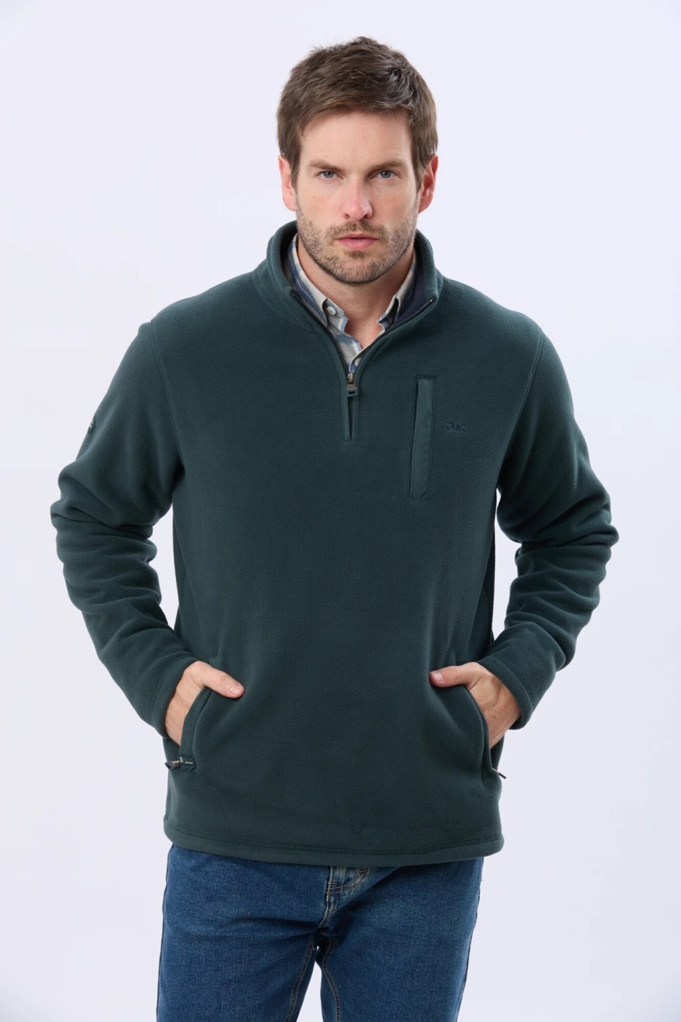$ 1.912 Buzo polar de abrigo, Cuello con cierre medio, bolsillo al pecho y bolsillos laterales para mayor comodidad. Para resistir las bajas temperaturas sin perder comodidad.