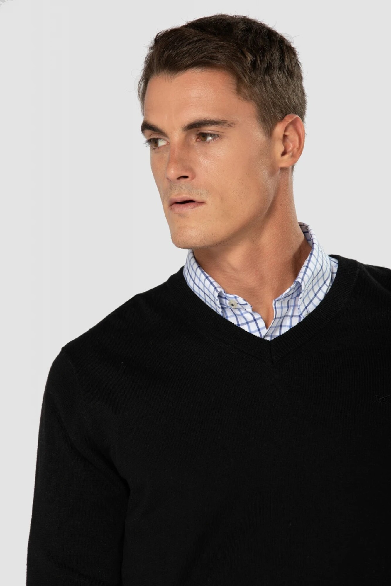 $ 1.752 Buzo tejido fino de hilo de algodón, cuello "v". Logo bordado en el pecho.