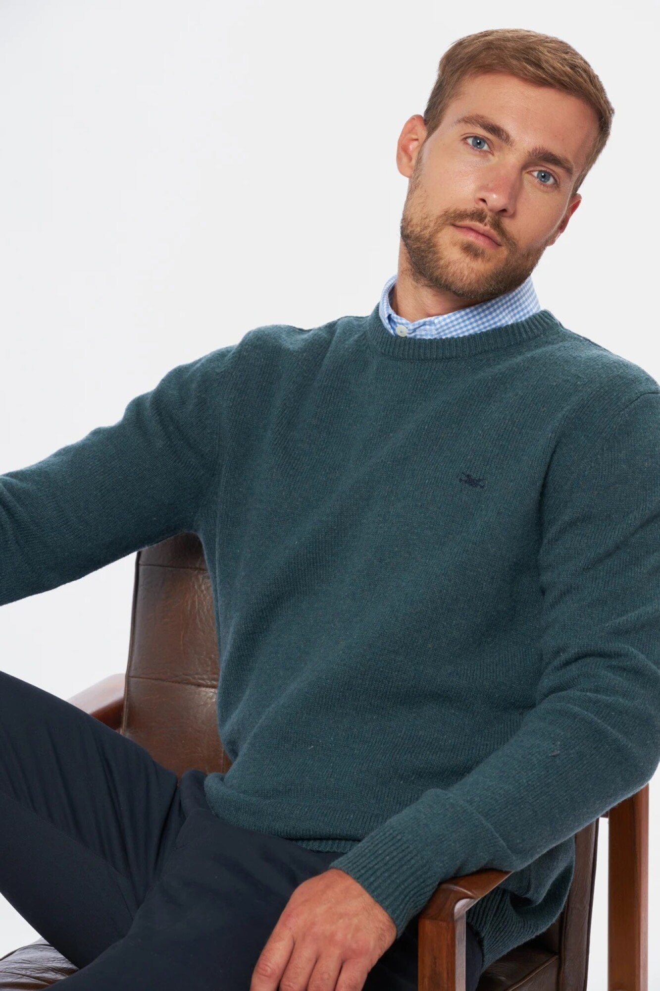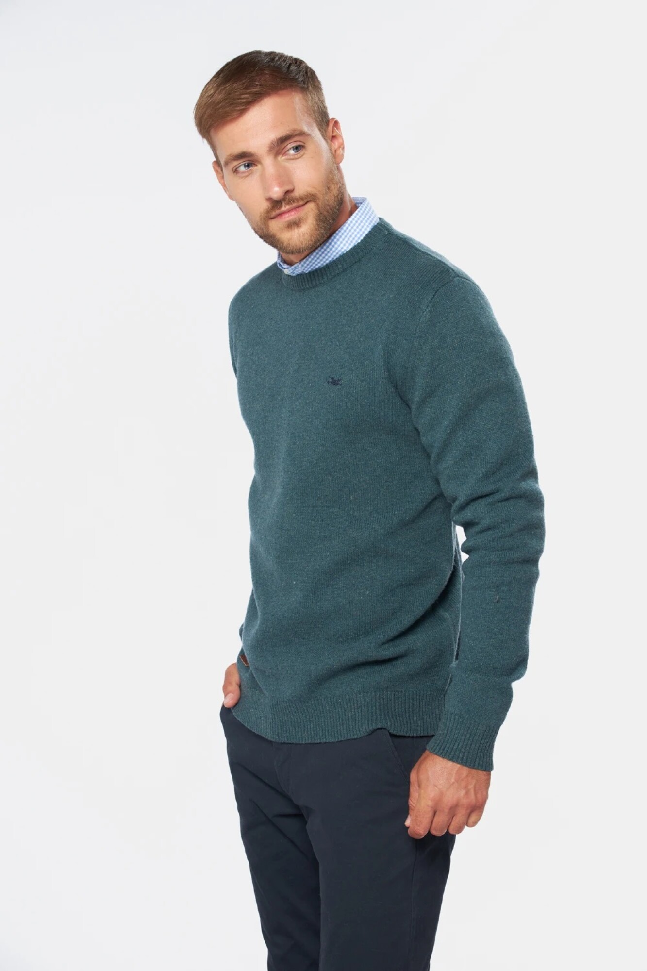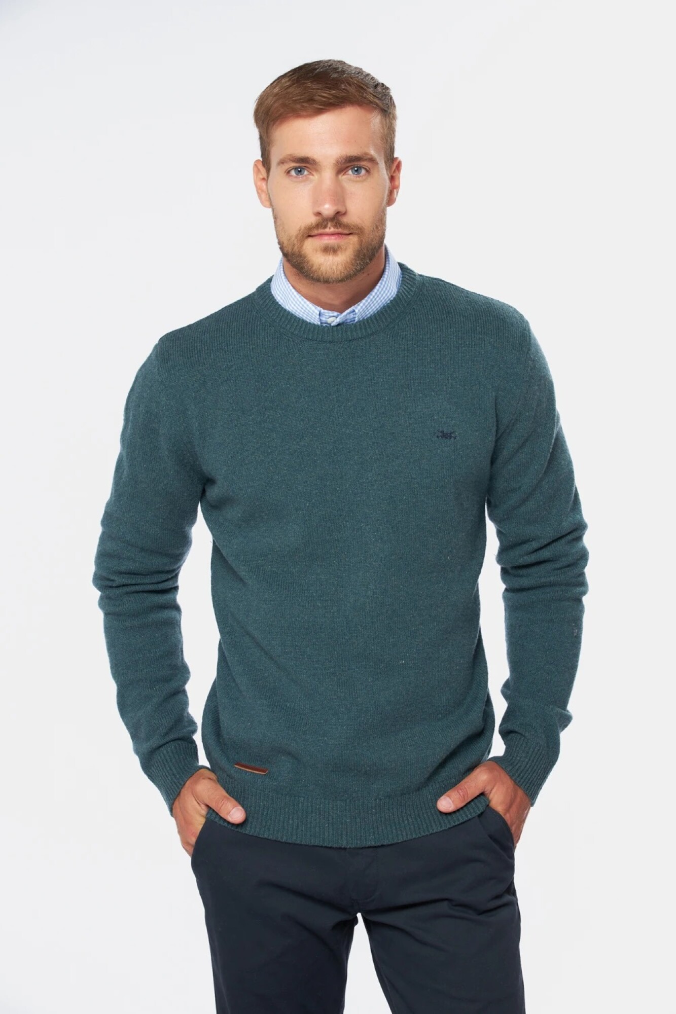 $ 2.152 Buzo tejido de lana, escote a la base.