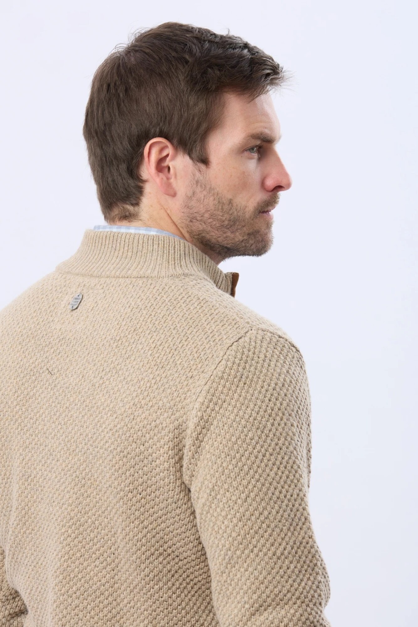 $ 2.232 Buzo tejido de abrigo en hilo grueso. Cuello con cierre con detalle en gamuza. La textura en relieve le aporta carácter al guardarropa invernal.