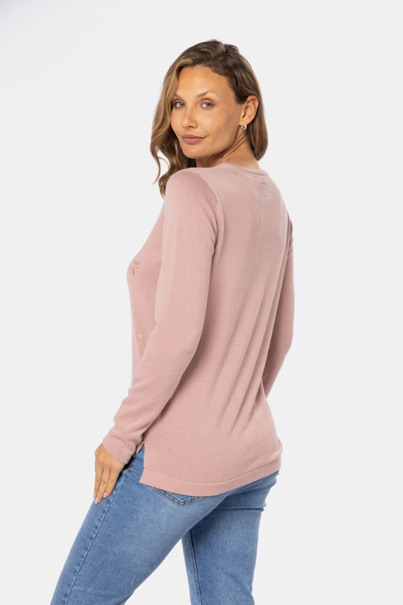 $ 1.752 Buzo tejido bordado floral ,confeccionado en algodón.