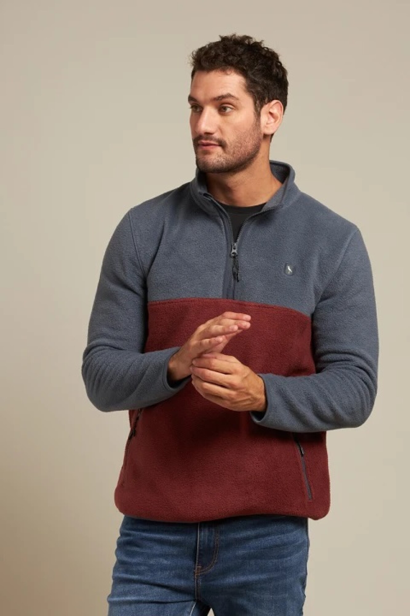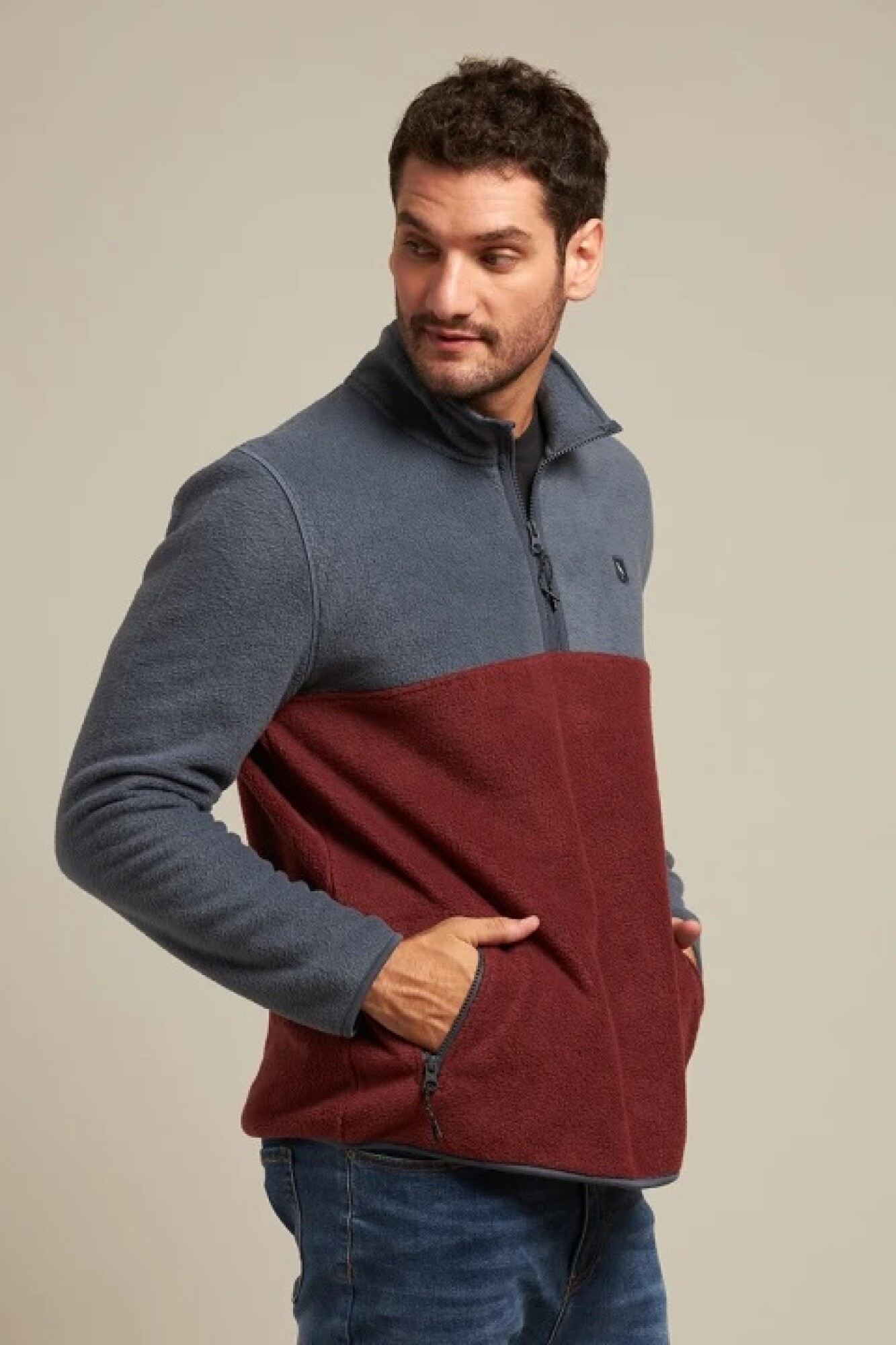 $ 2.072 Buzo polar medio cierre con cremallera y bolsillos.