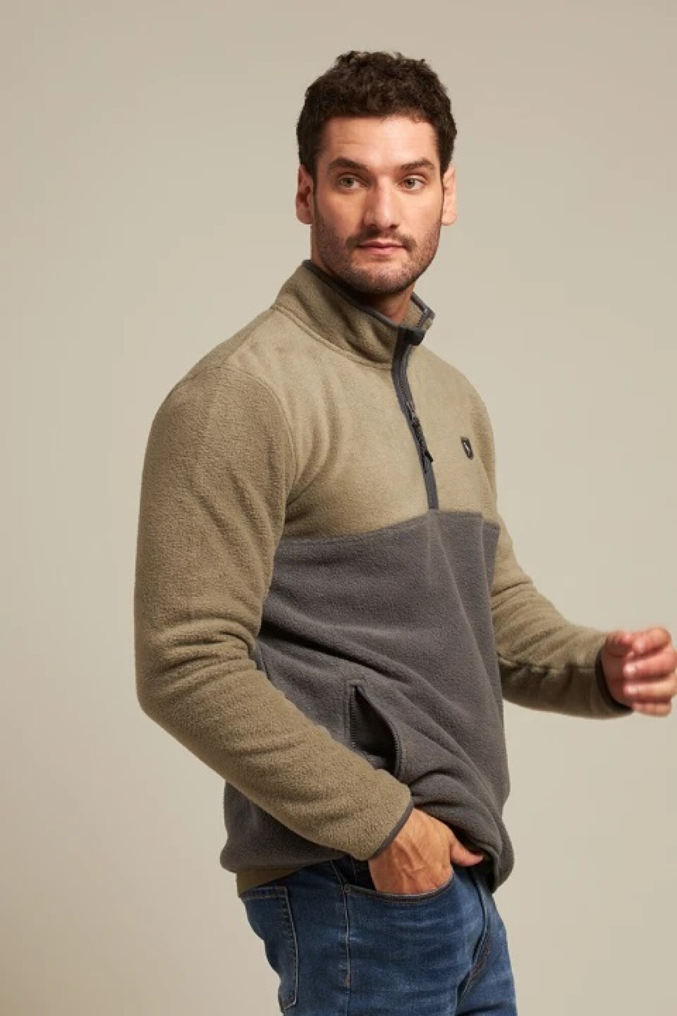 $ 2.072 Buzo polar medio cierre con cremallera y bolsillos.