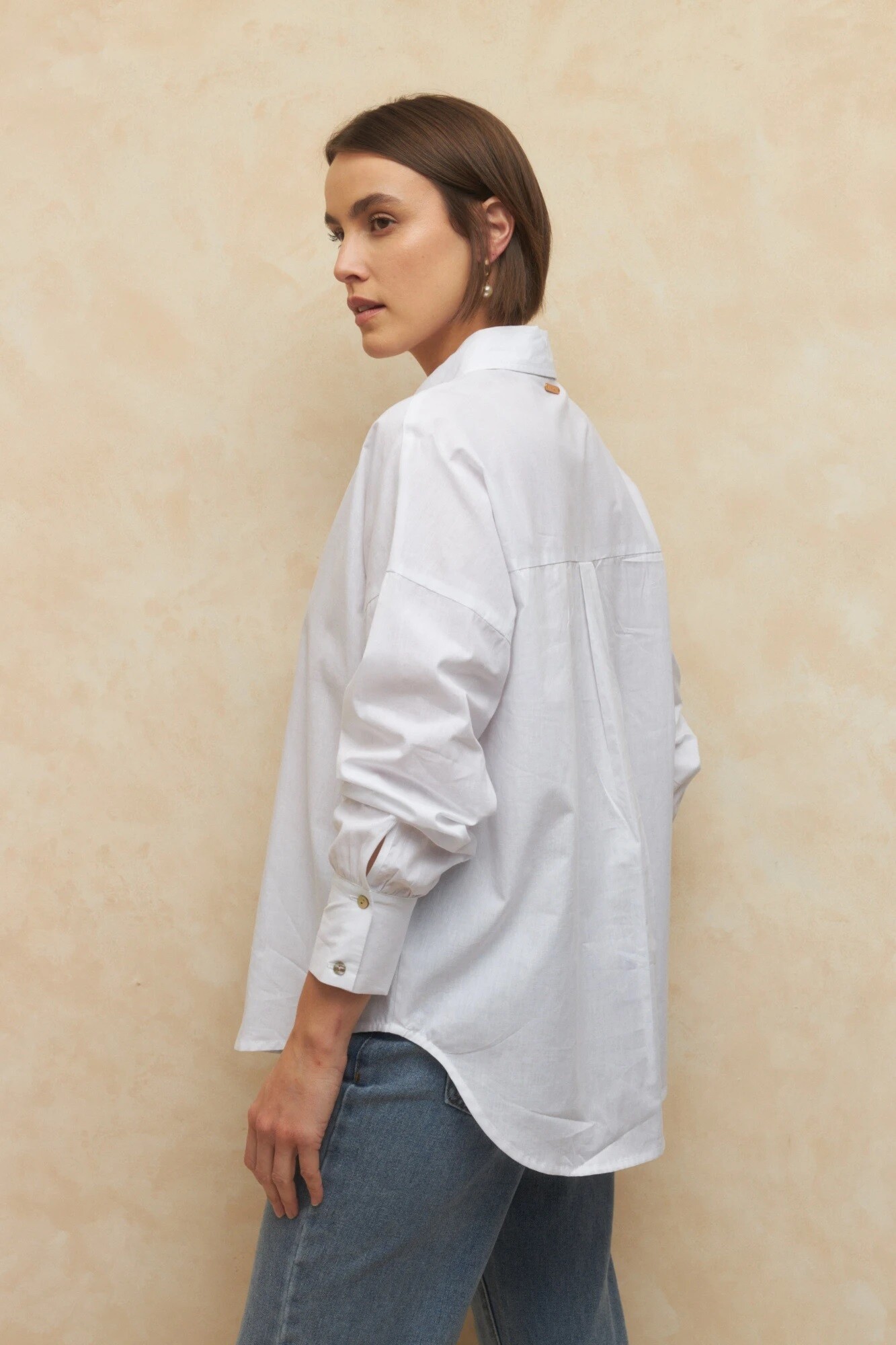 $ 1.112 Camisa de manga larga y botones de nácar. Una prenda versátil para usar tanto como camisa como sobrecamisa, clásica y atemporal.