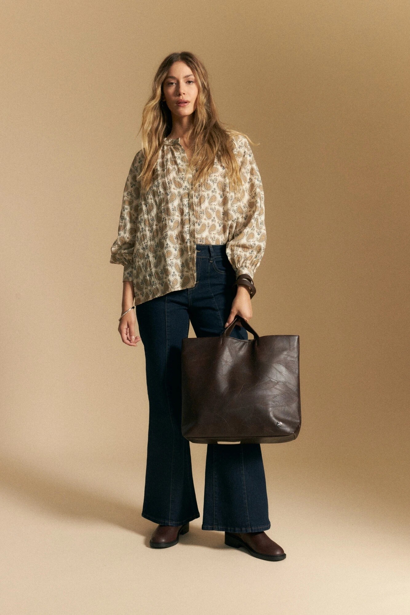 Blusa estampada de manga larga con inspiración paisley que aporta movimiento y carácter a la silueta. De calce relajado y escote con leve abertura, presenta frunces en el delantero que suman volumen suave y un acabado delicado. Las mangas largas con puño elastizado acompañan la caída fluida del tejido, logrando una prenda cómoda y versátil. La mezcla de tencel y viscosa ofrece un tacto suave, fresco y liviano, ideal para looks de día con impronta bohemia y actual.Blusa estampada de manga larga con inspiración paisley que aporta movimiento y carácter a la silueta. De calce relajado y escote con leve abertura, presenta frunces en el delantero que suman volumen suave y un acabado delicado. Las mangas largas con puño elastizado acompañan la caída fluida del tejido, logrando una prenda cómoda y versátil. La mezcla de tencel y viscosa ofrece un tacto suave, fresco y liviano, ideal para looks de día con impronta bohemia y actual.