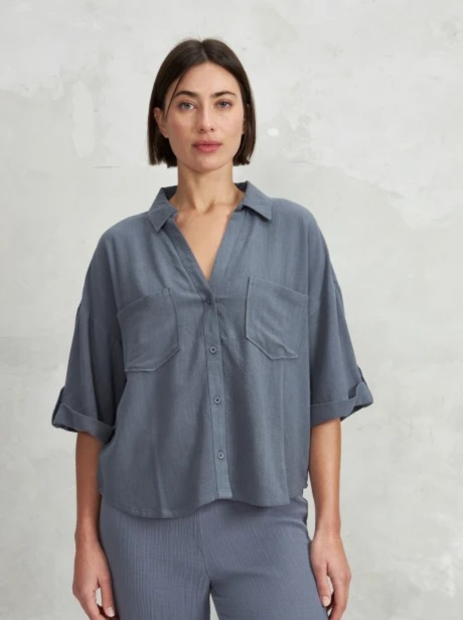 $ 1.352 Camisa manga oversize 2 bolsillos.
