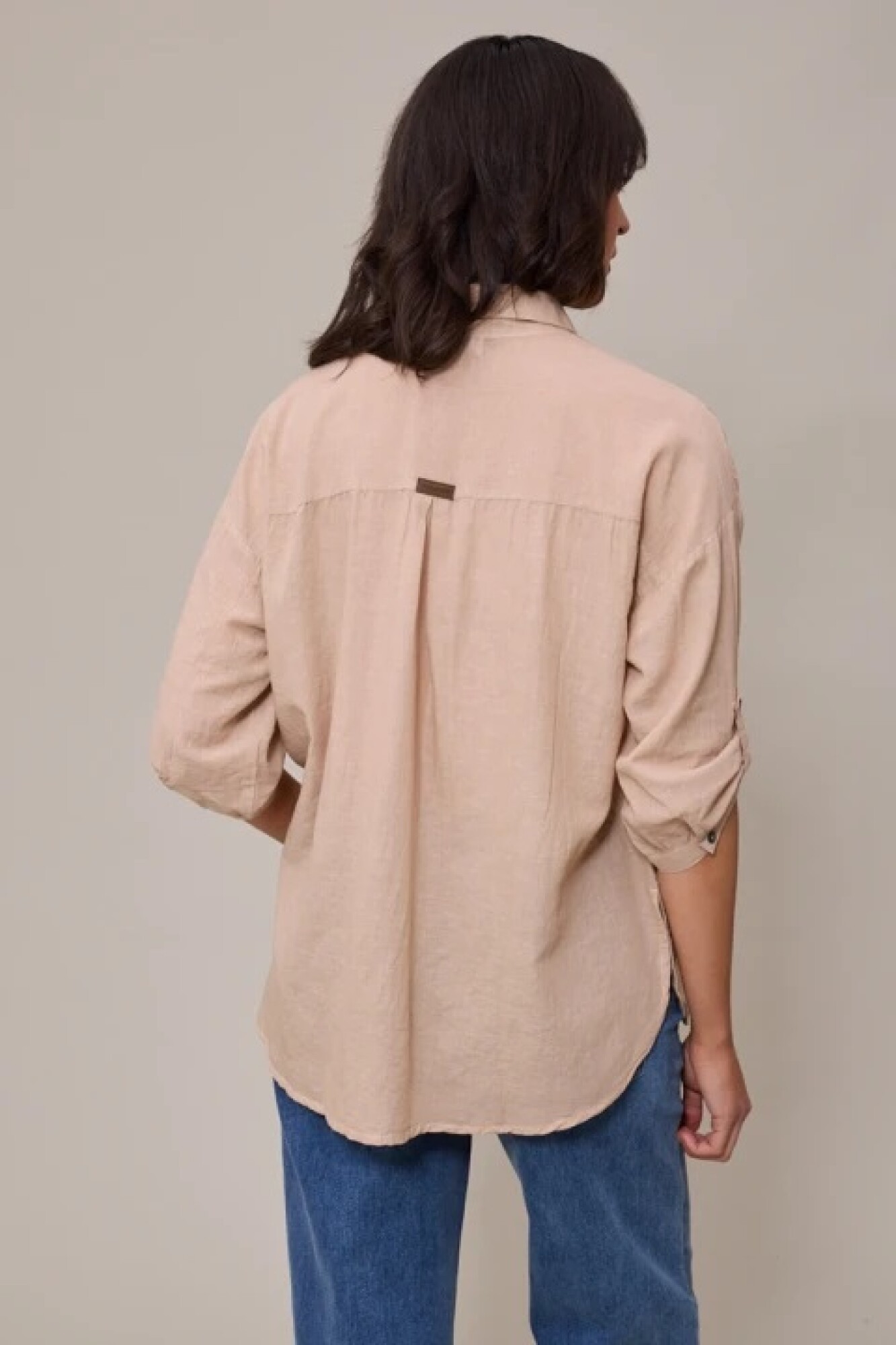 $ 1.432 Camisa de lindo y algodón manga al codo 2 bolsillos.