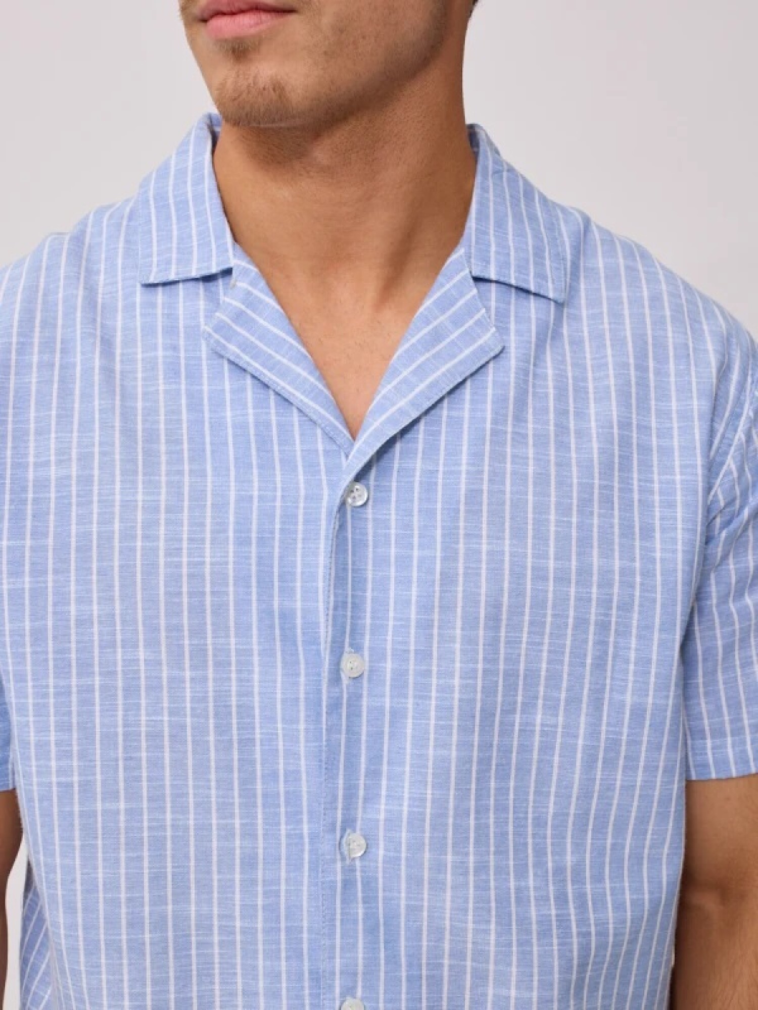 $ 1.272 Camisa de rayas finas cuello solapa.