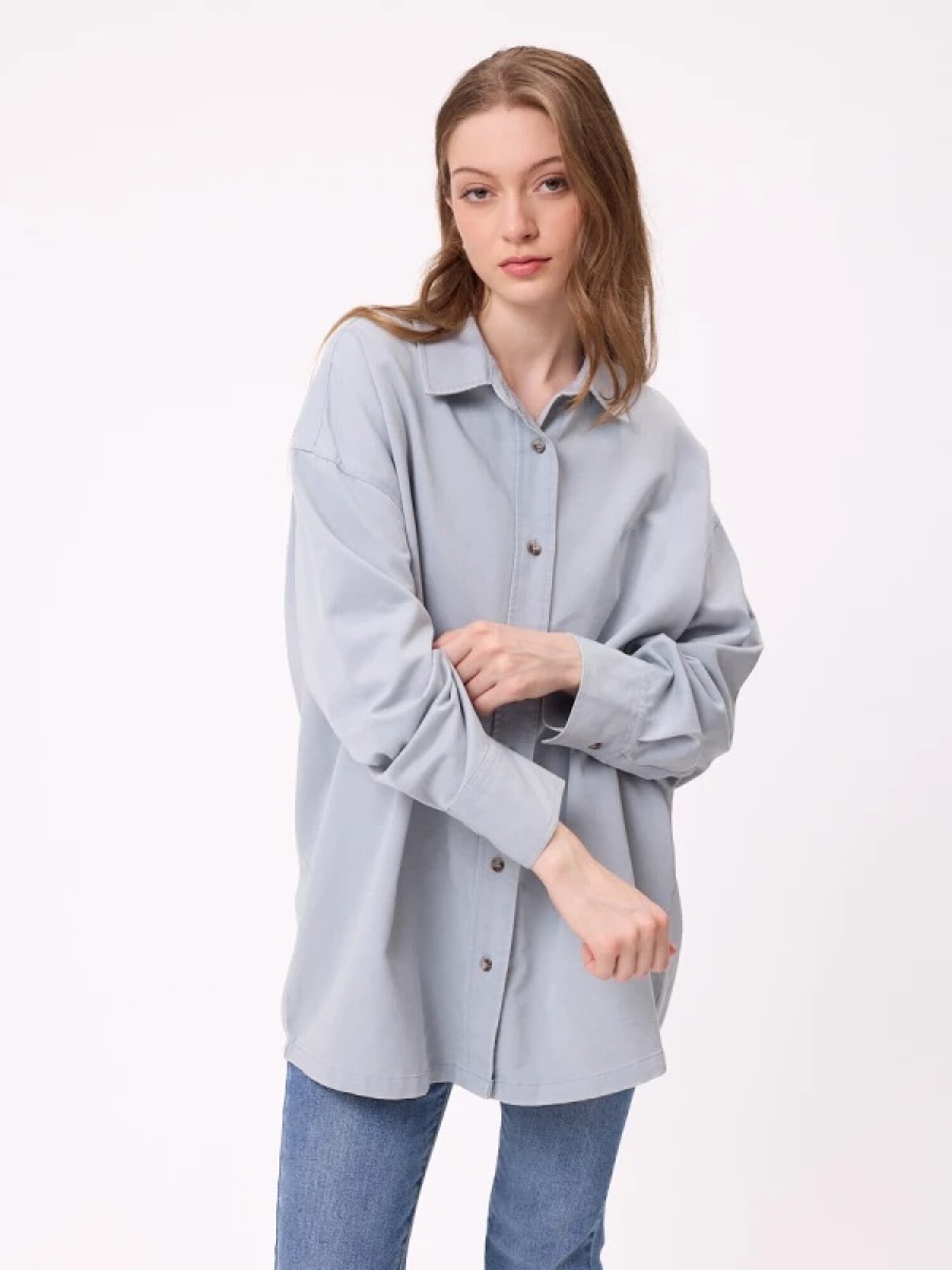 $ 1.592 Camisa manga larga lisa oversize.