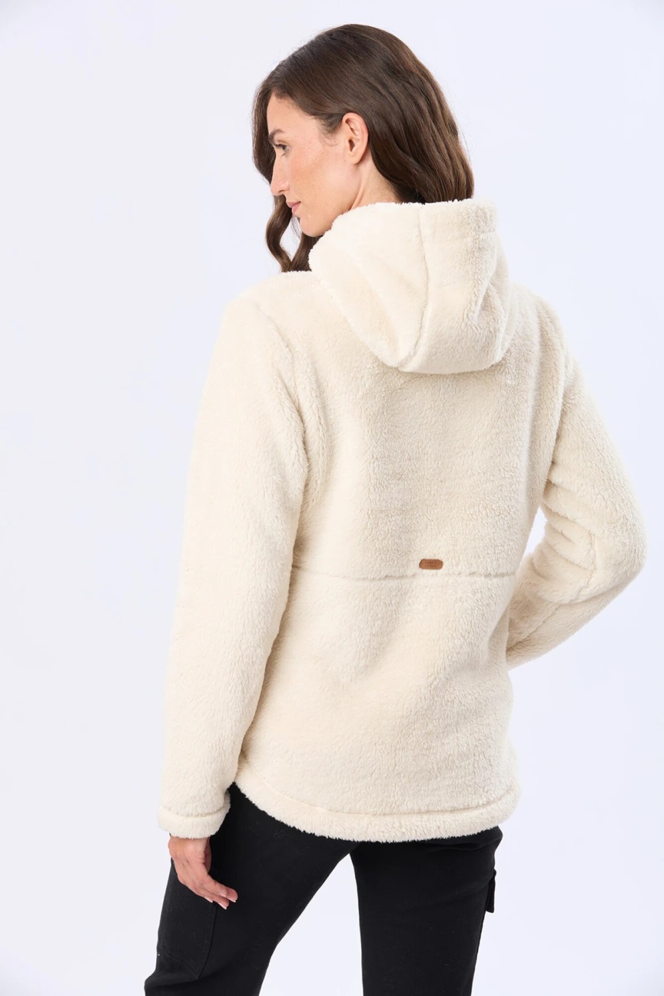$ 1.992 Campera de sherpa con capucha y bolsillos con cierre.