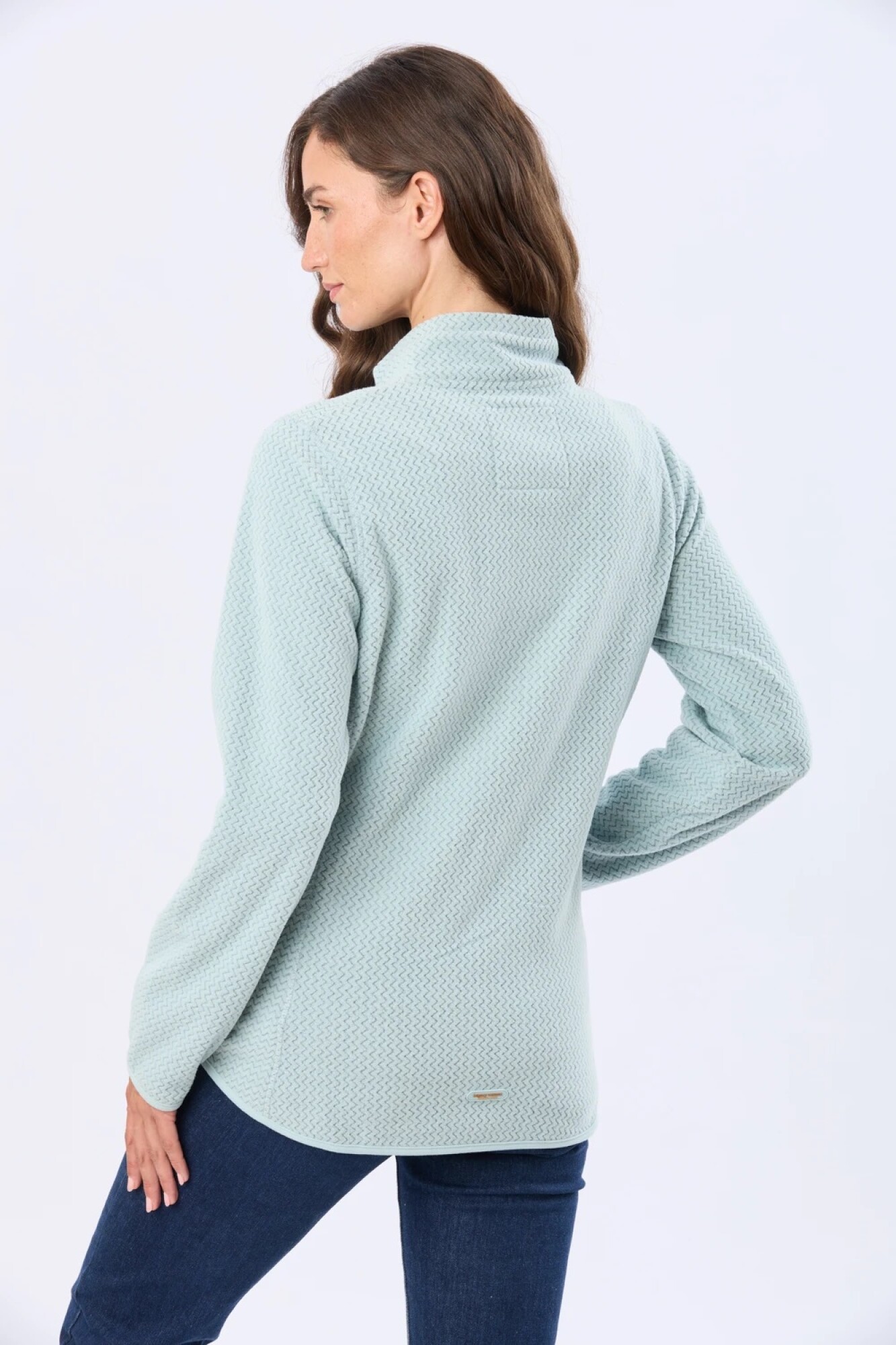 $ 1.584 Campera en micropolar, liviana y térmica. Diseño en zig zag, cierre frontal, bolsillos laterales y bolsillo superior con cierre y cuello alto, ideal para un estilo activo y funcional.