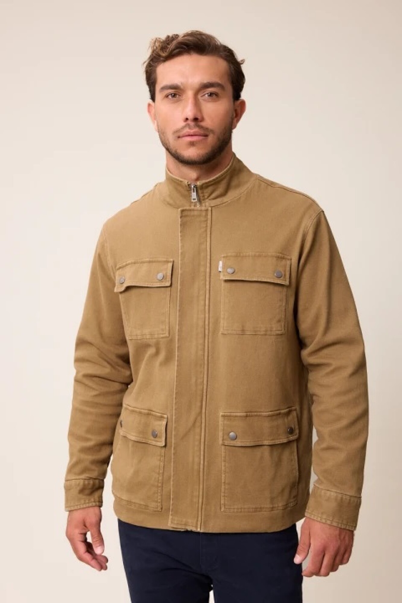 $ 2.952 Campera de gabardina 4 bolsillos con tapa y broches.