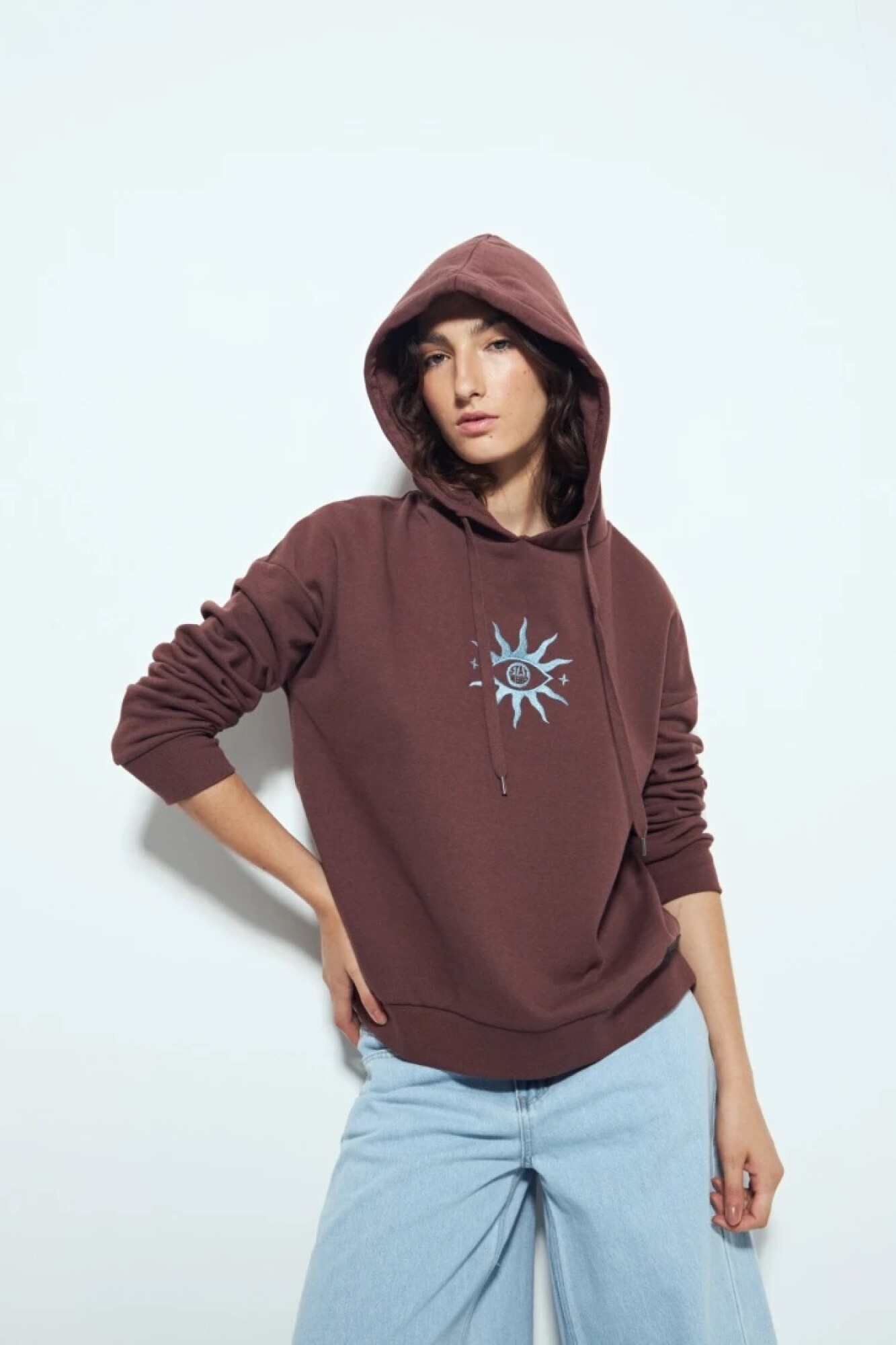 Buzo de calce relajado y estética urbana, pensado para sumar personalidad al look diario. El diseño frontal con estampa gráfica aporta un guiño distintivo y actual, mientras que la capucha con cordones regulables refuerza su impronta casual y funcional. Confeccionado en una mezcla de algodón y poliéster que ofrece una textura suave, buen cuerpo y confort térmico, ideal para usar solo o en capas. Una prenda versátil, clave para elevar cualquier look sin esfuerzo.