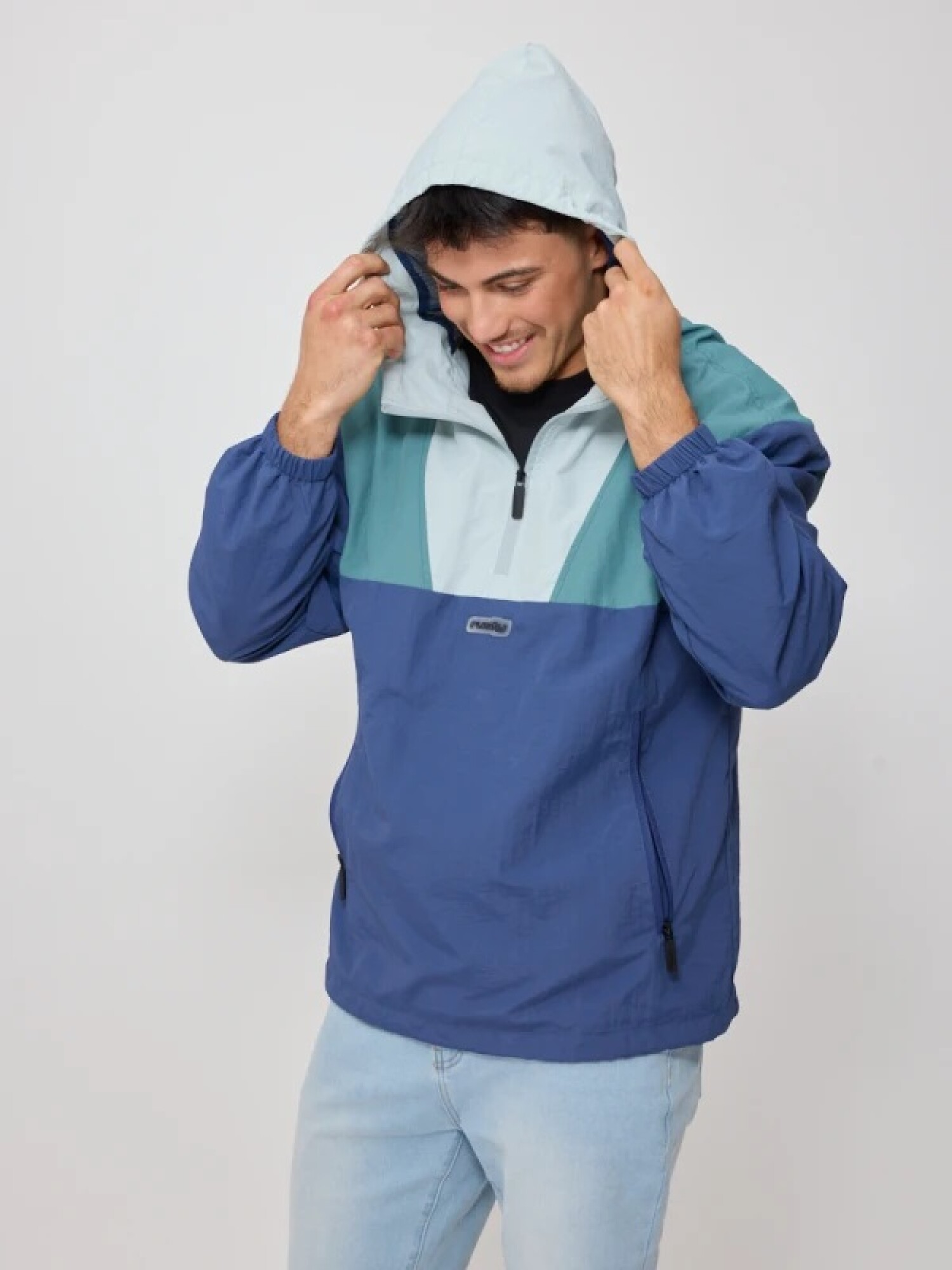 $ 2.072 Rompevientos de nylon capucha y medio cierre.