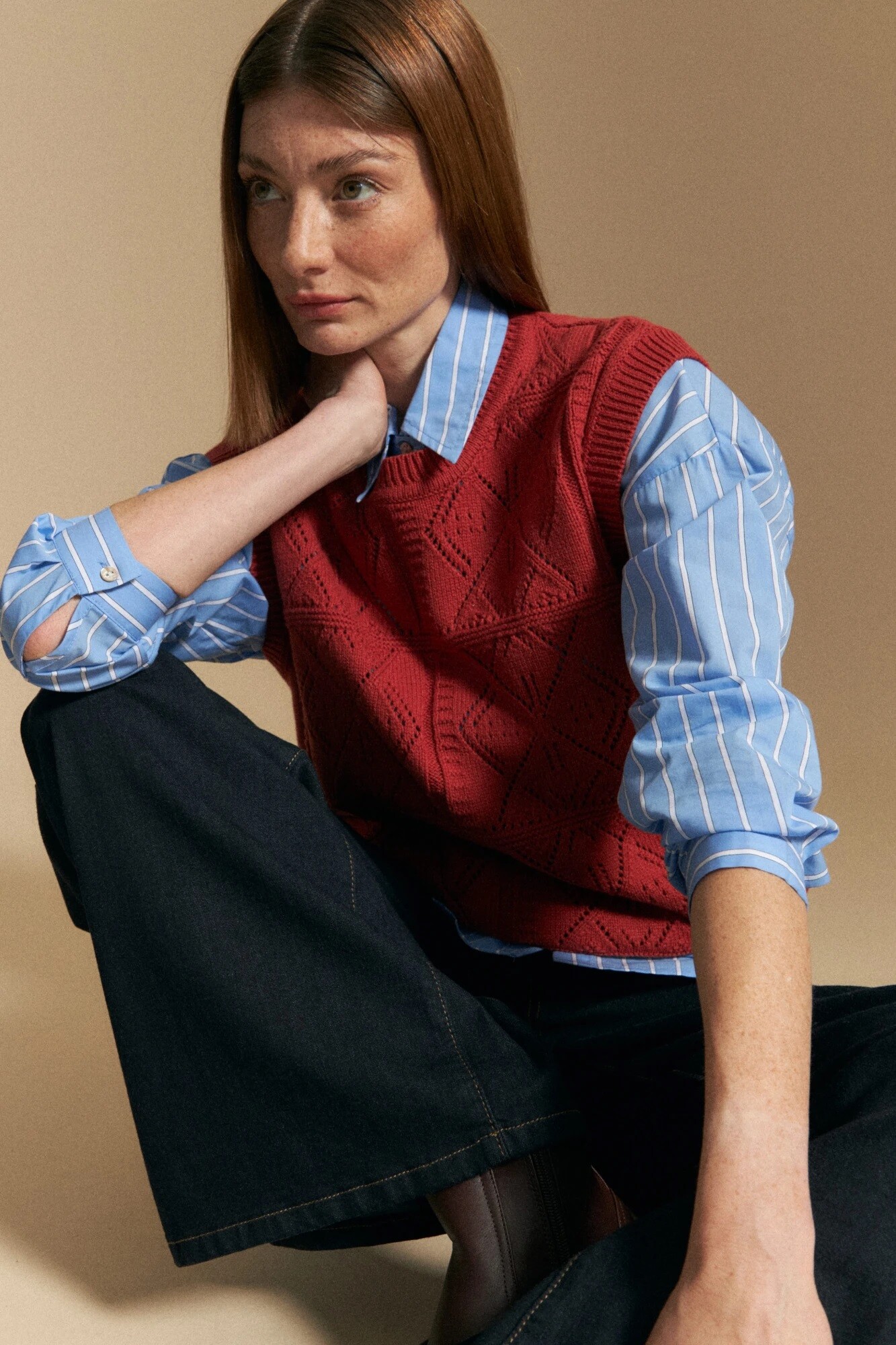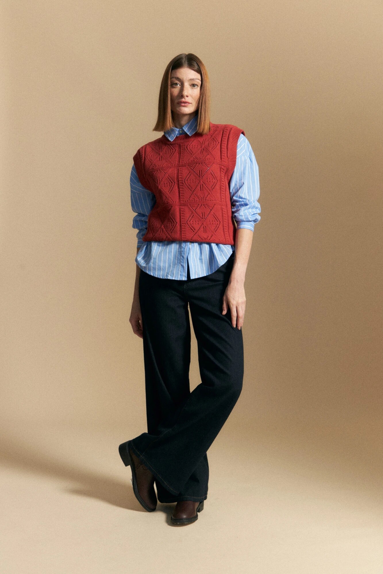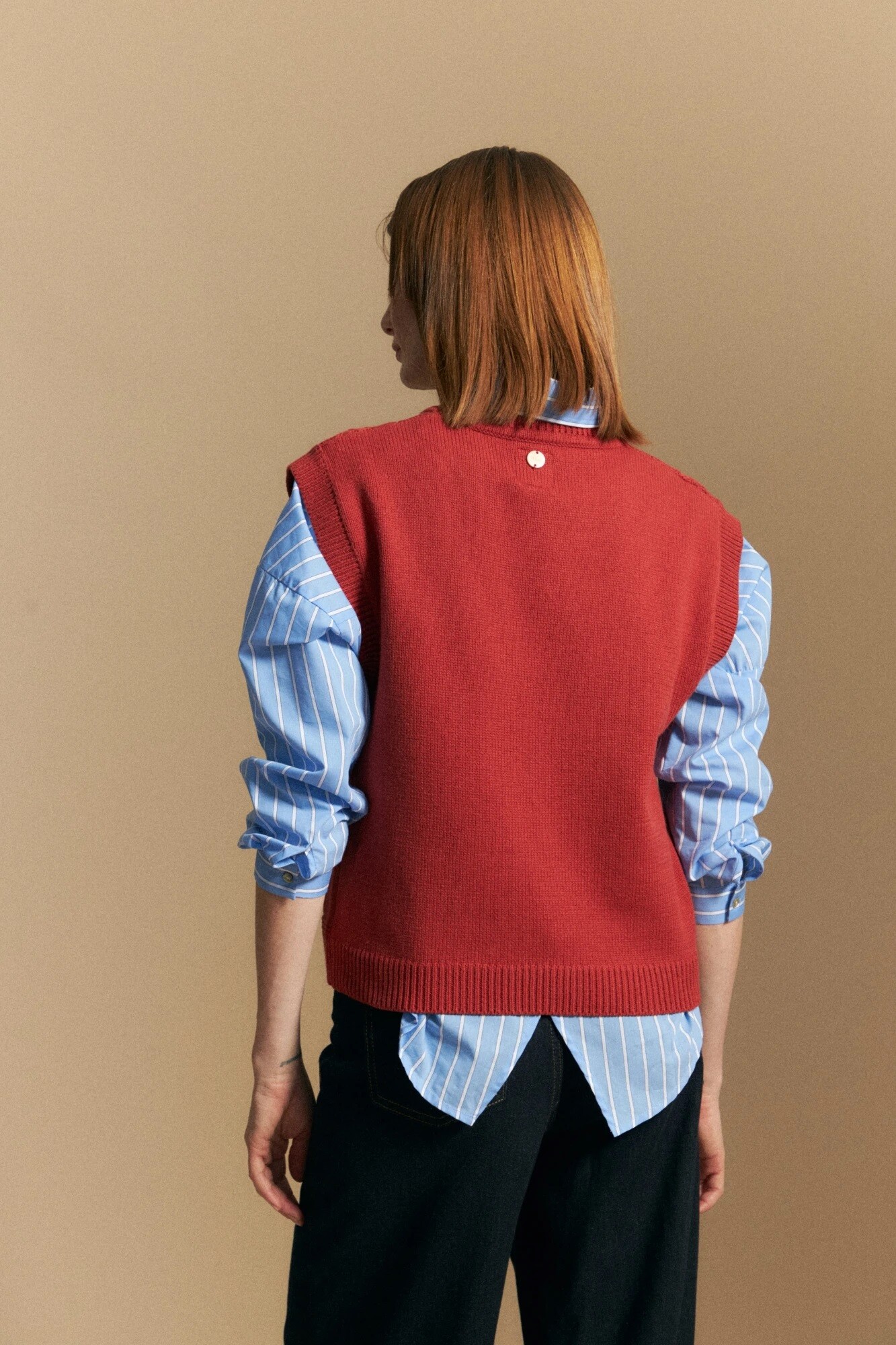 Chaleco tejido de calce cómodo y diseño versátil, ideal para sumar textura y abrigo liviano a distintos estilismos. Su construcción en punto combina suavidad y resistencia, logrando una prenda funcional que se adapta con facilidad a looks urbanos y más pulidos. Un básico actualizado que funciona como capa clave en propuestas de temporada y se integra naturalmente a un guardarropa atemporal.