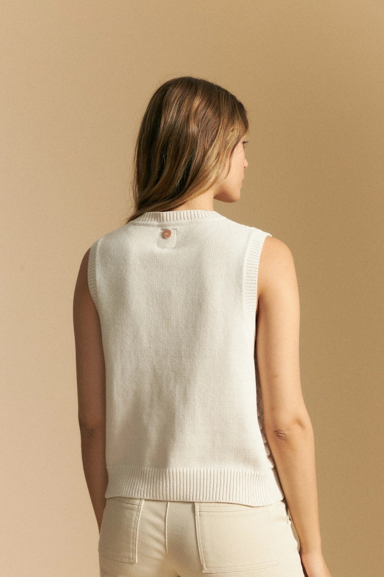 $ 1.432 Chaleco tejido sin mangas con botones.