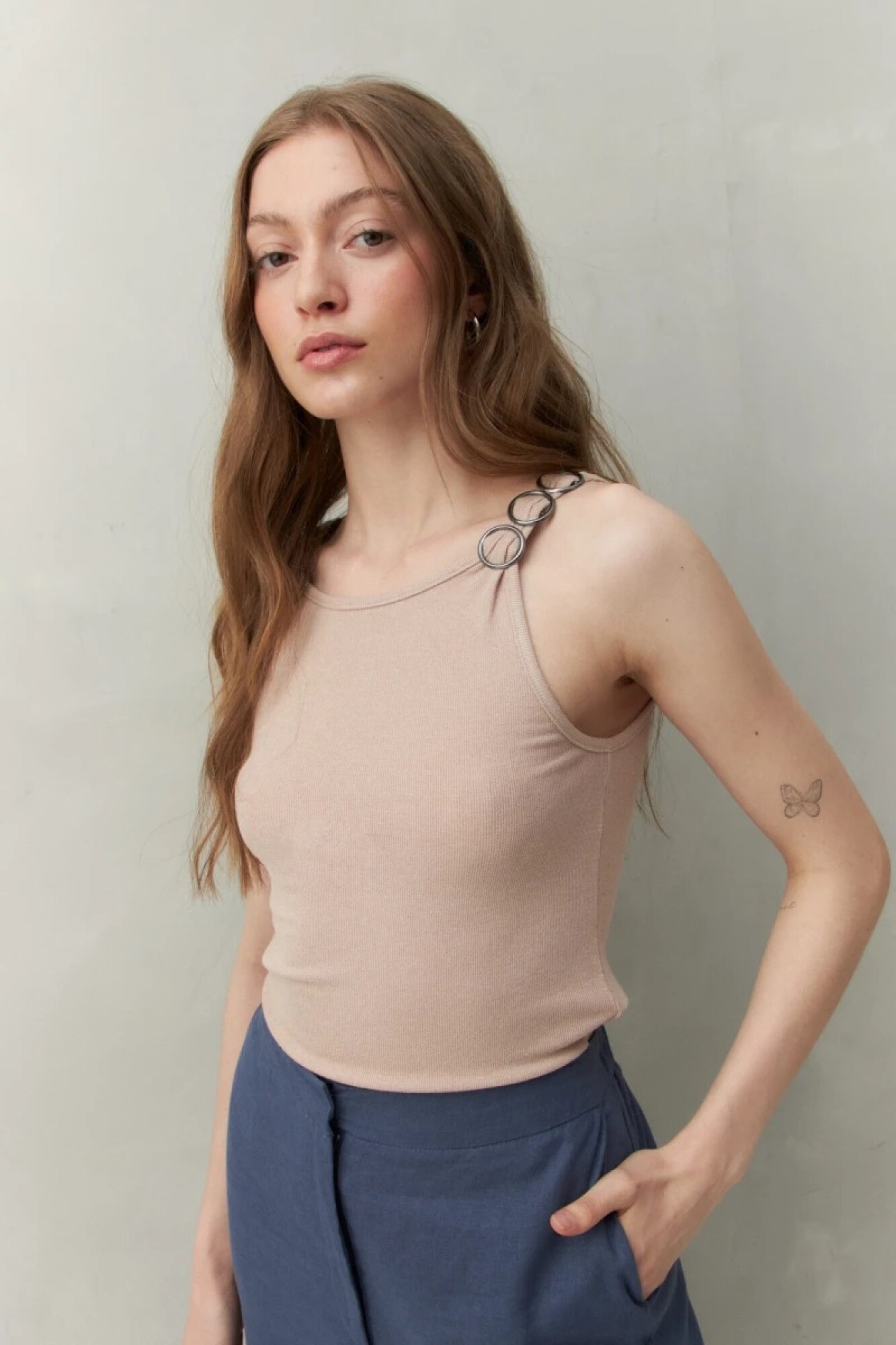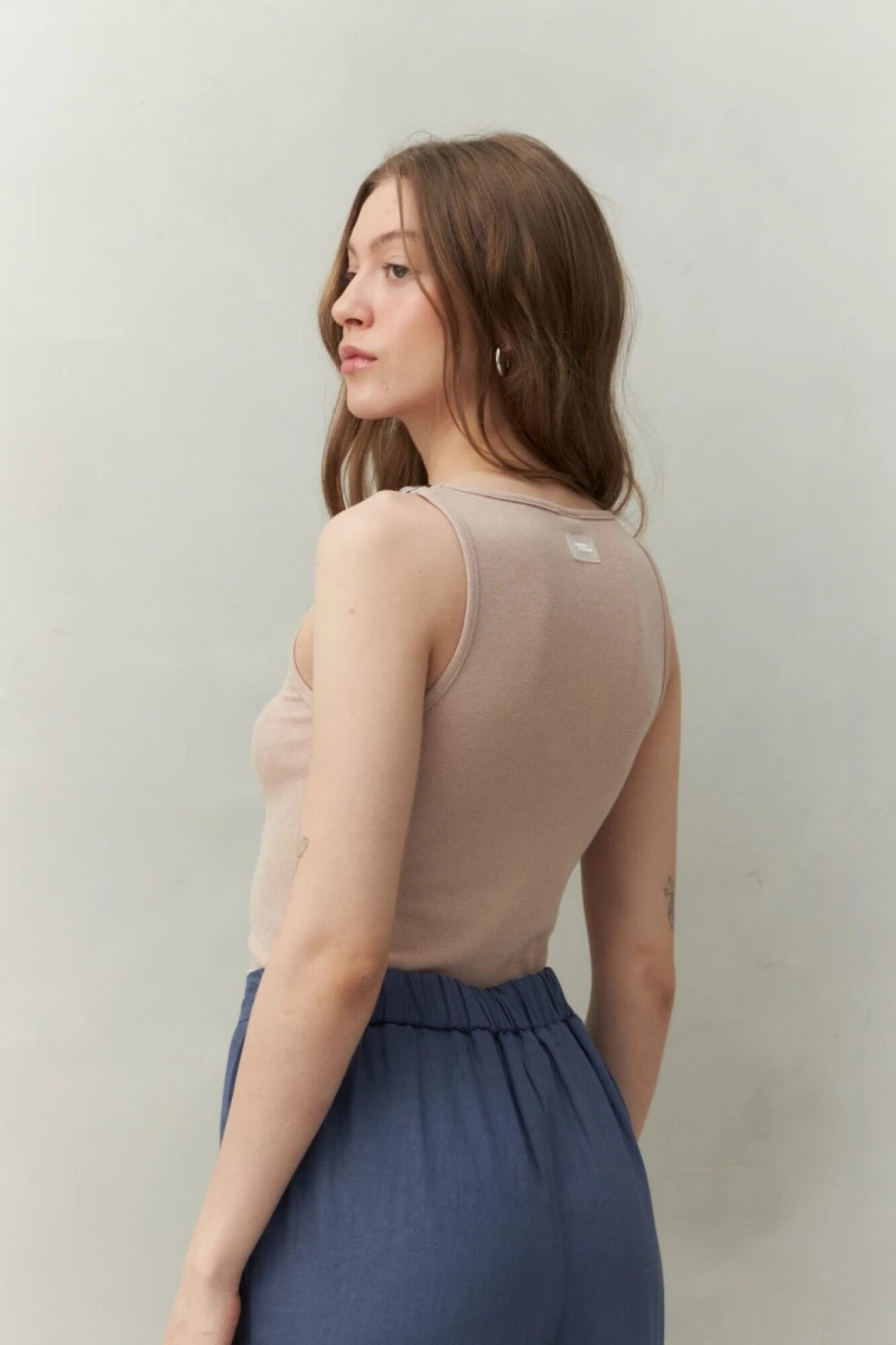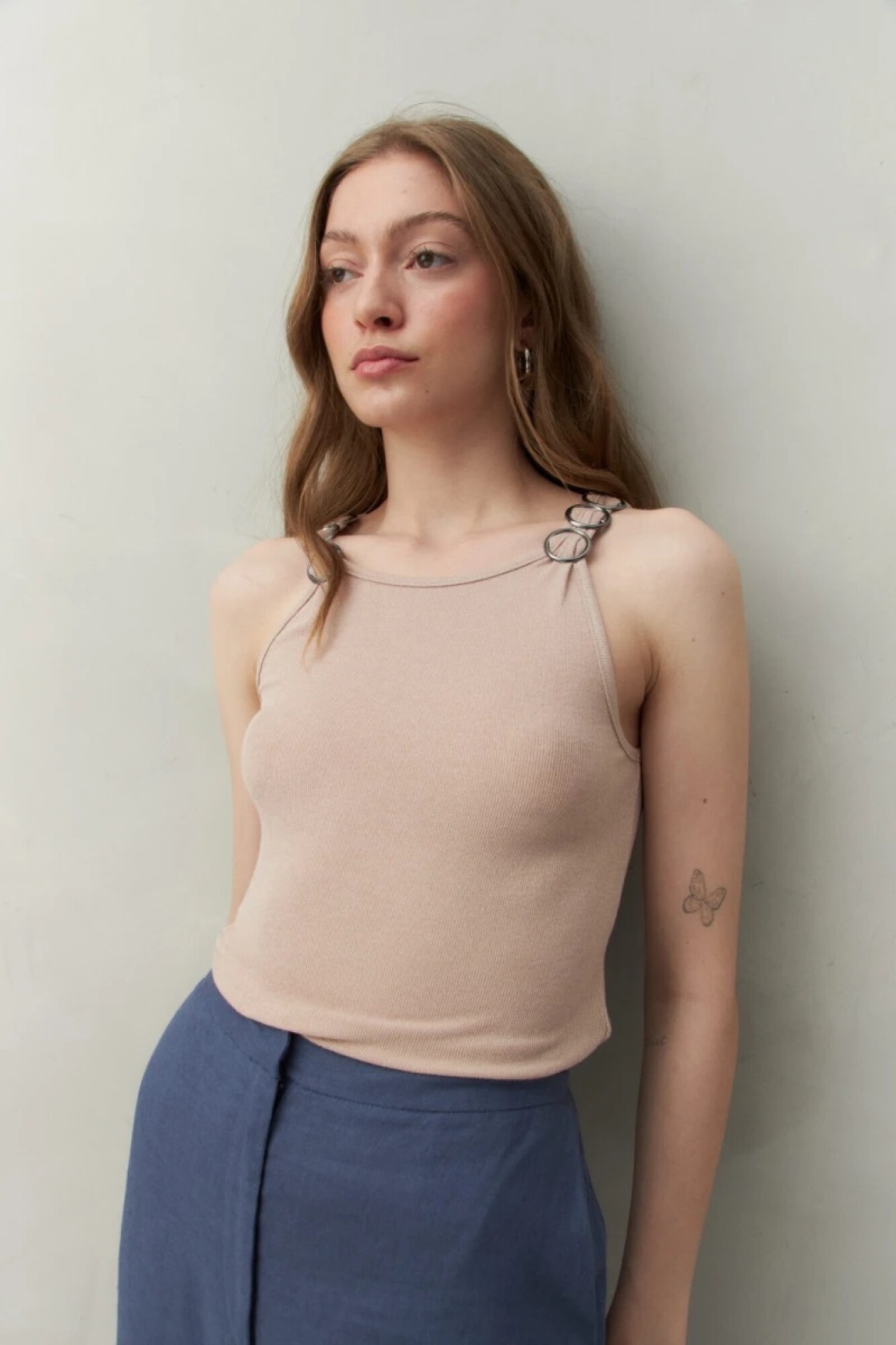 $ 792 Musculosa de hilo con detalles en los breteles.