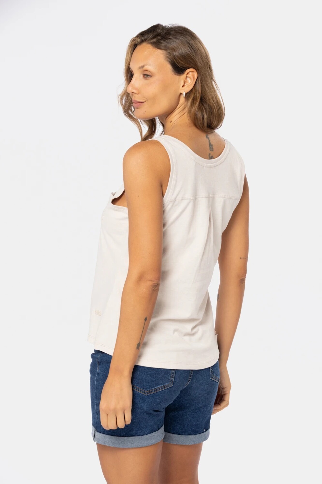 $ 552 Musculosa lisa con botones y bolsillo.