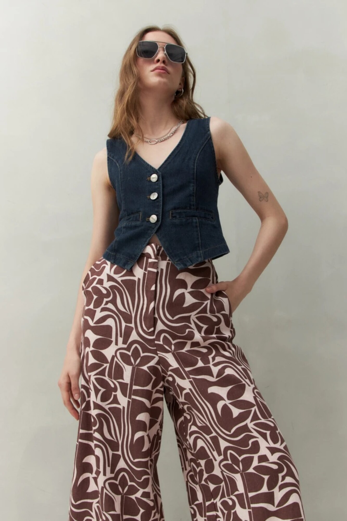 Pantalón de corte amplio confeccionado en mezcla de lino y viscosa, una combinación que aporta frescura, caída fluida y un tacto natural. Su diseño de cintura media con elástico en la espalda ofrece comodidad sin perder estilo. Ideal para looks relajados de verano o para elevar un outfit casual con camisas o tops ligeros.