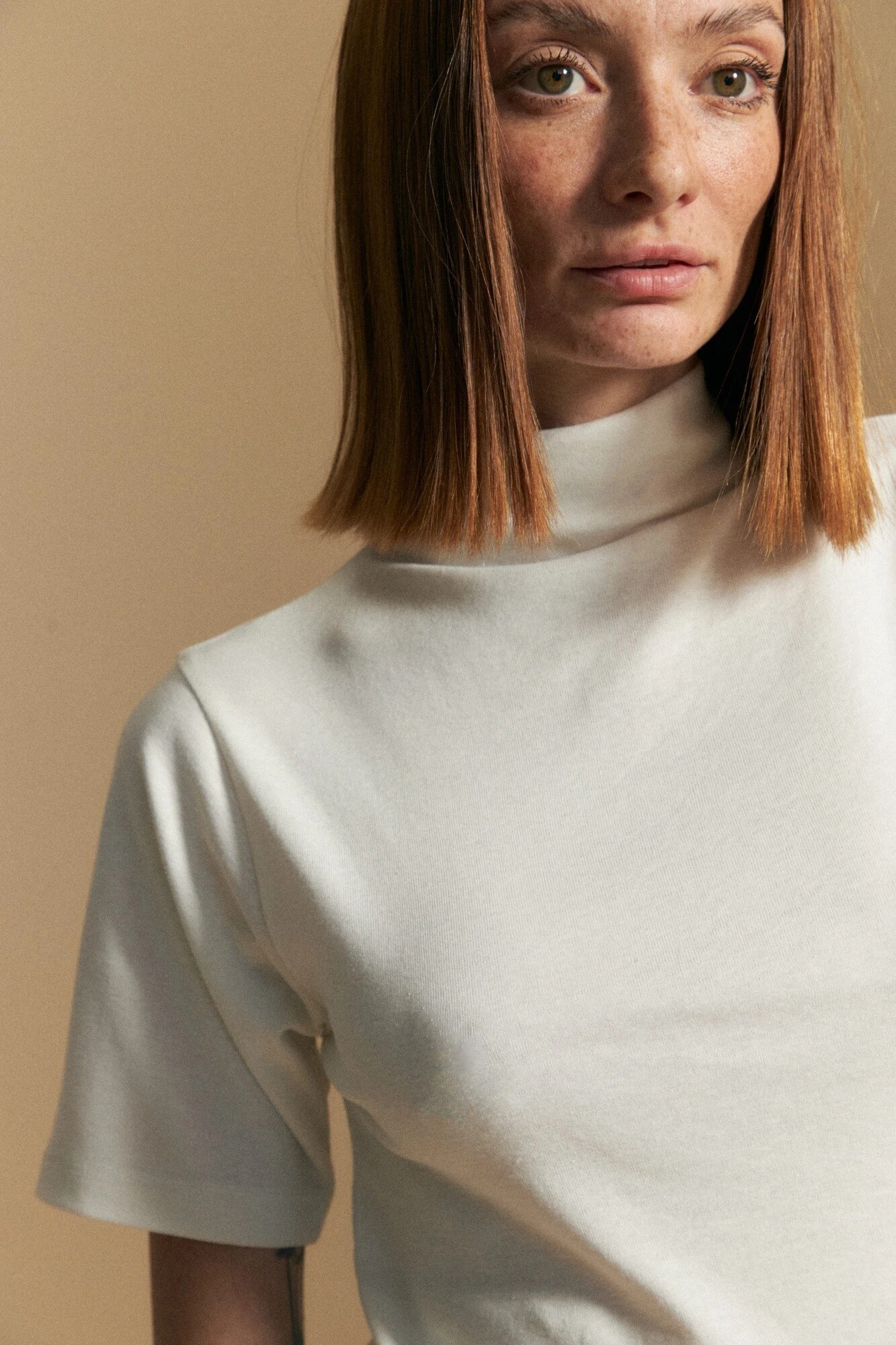 Polera de manga corta de calce limpio y silueta minimal, ideal para sumar un touch moderno a looks de día u office. Su cuello tipo polera aporta estructura y un aire sofisticado, mientras que el tejido suave y flexible acompaña el cuerpo con comodidad. Una prenda versátil y atemporal, perfecta para usar sola o como base en estilismos más armados.