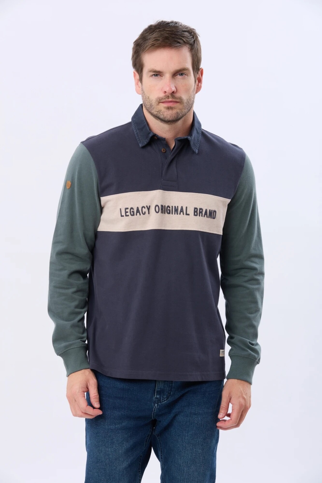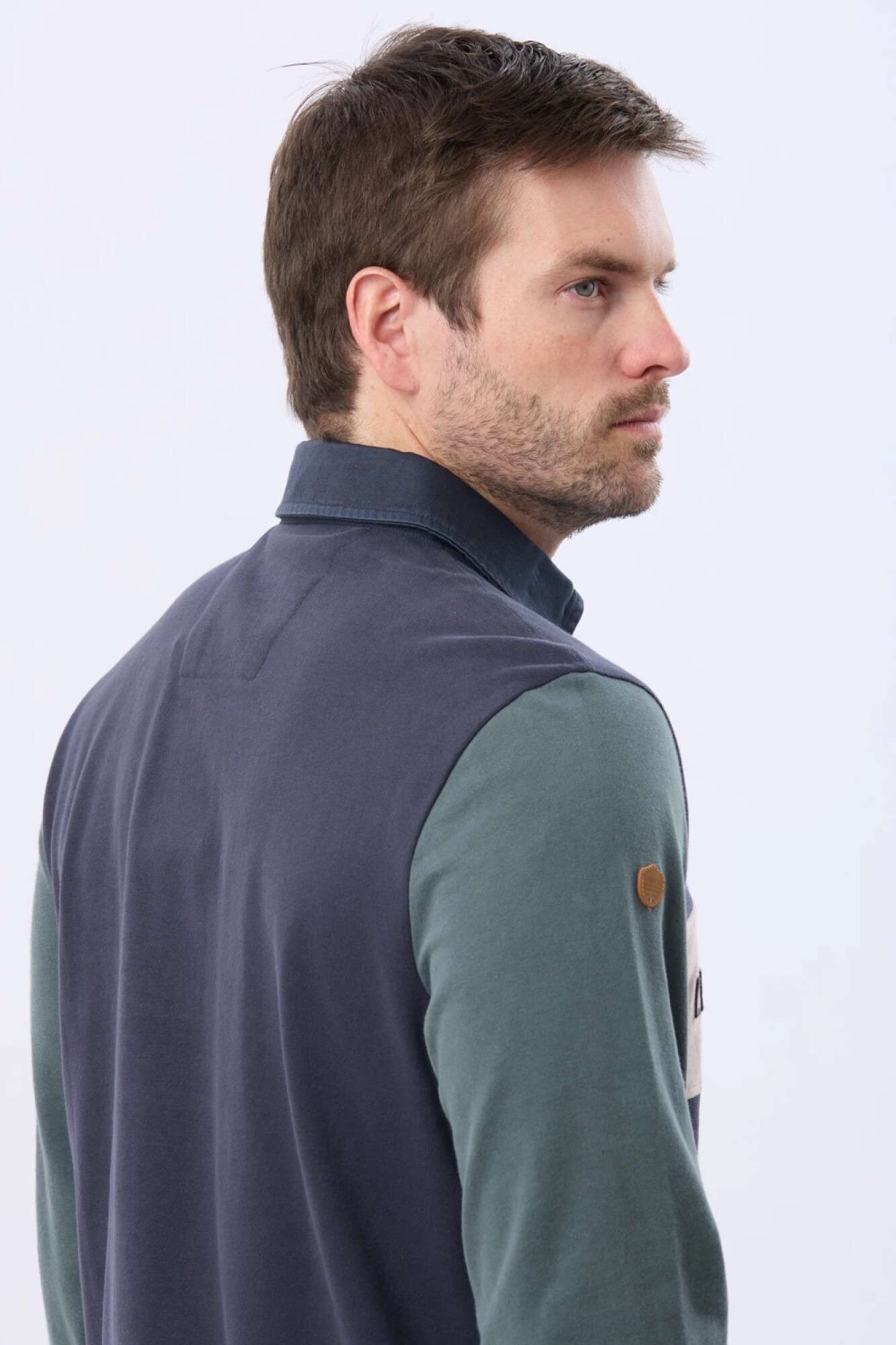 $ 2.072 Remera polo rayada combinada confeccionada en algodón, con estampa bordada y cuello con botones