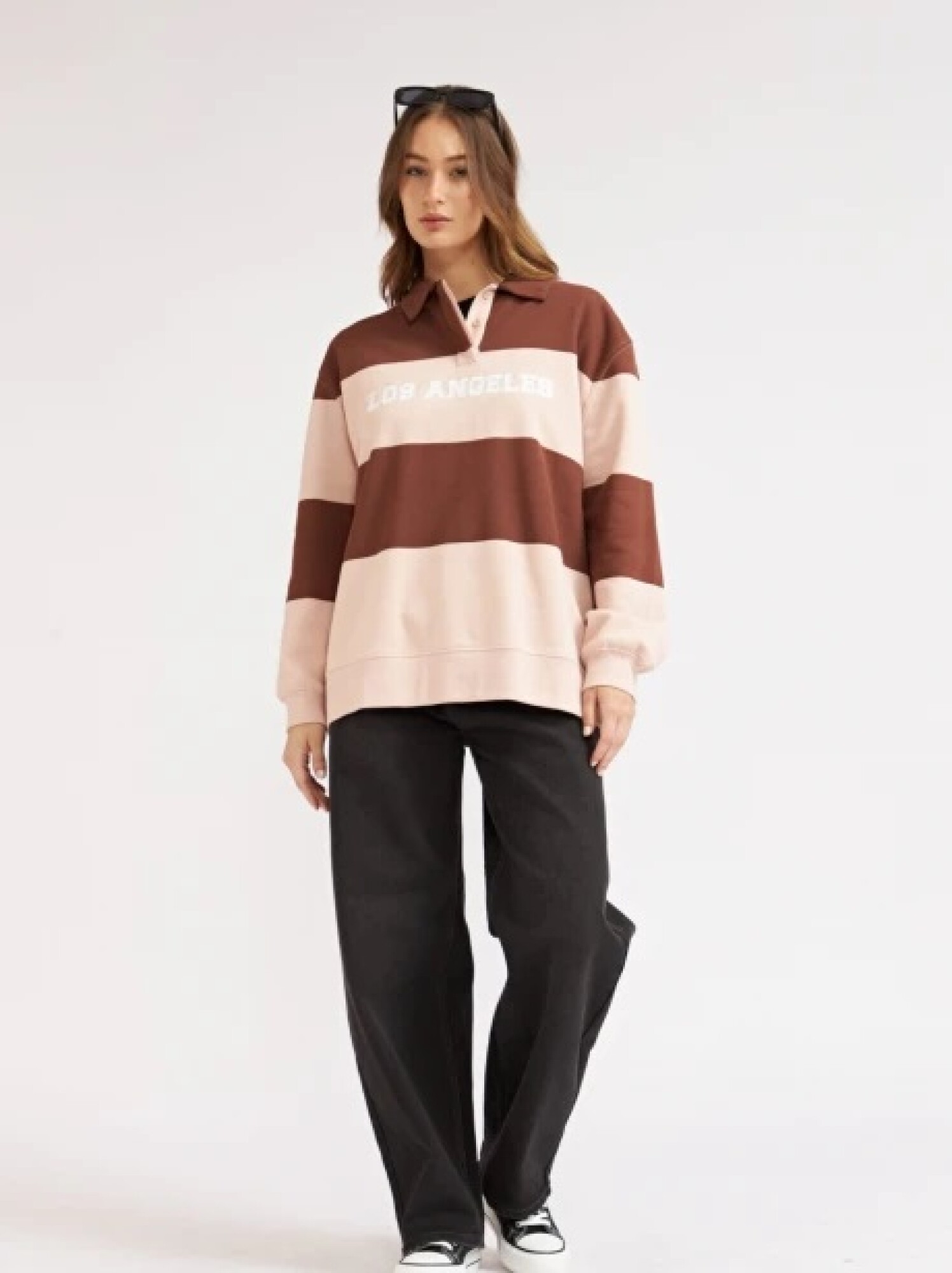 $ 1.592 Remera oversize rayas combinada con estampa.