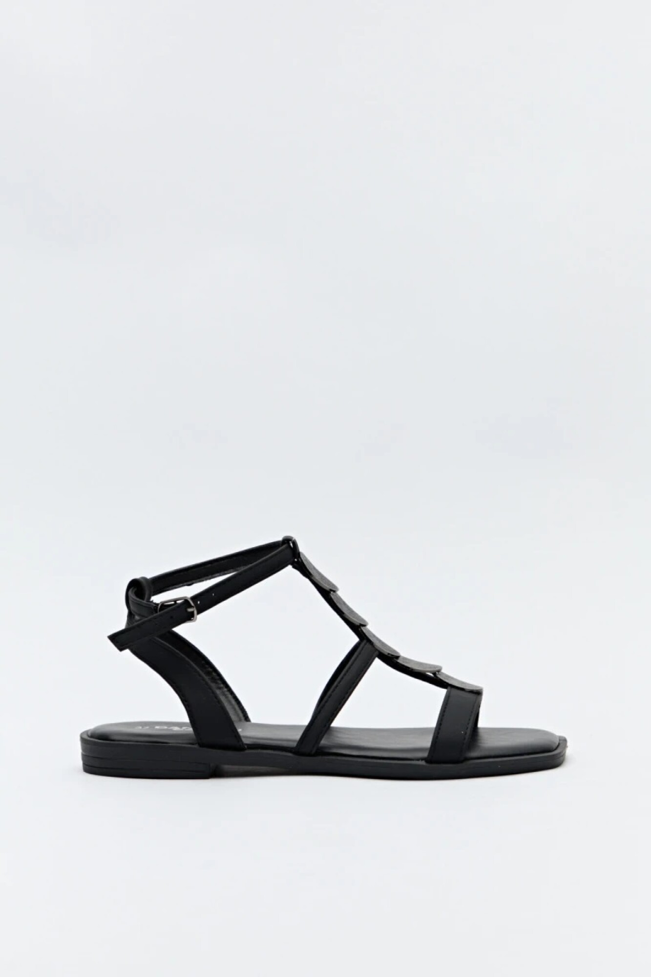 De inspiración boho chic, estas sandalias planas se destacan por sus tiras finas y el aplique metálico central que aporta un toque distintivo y sofisticado. Con cierre de hebilla lateral y base cómoda, son el aliado perfecto para looks de verano que combinan estilo y ligereza. Ideales para acompañar vestidos, shorts o faldas.