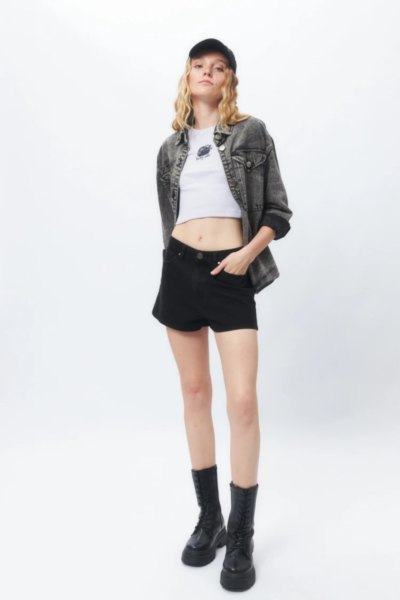 $ 792 Short de jean de tiro alto, atemporal y de denim, no puede fallar!