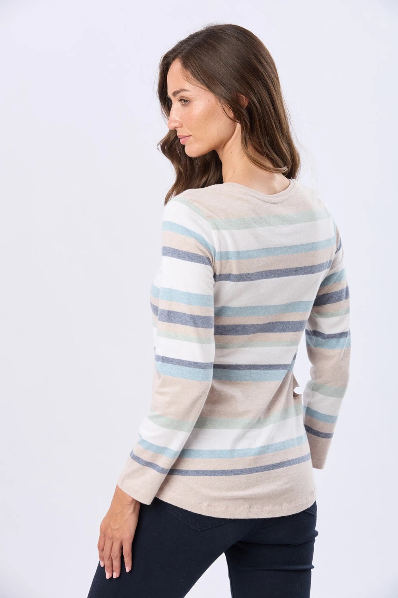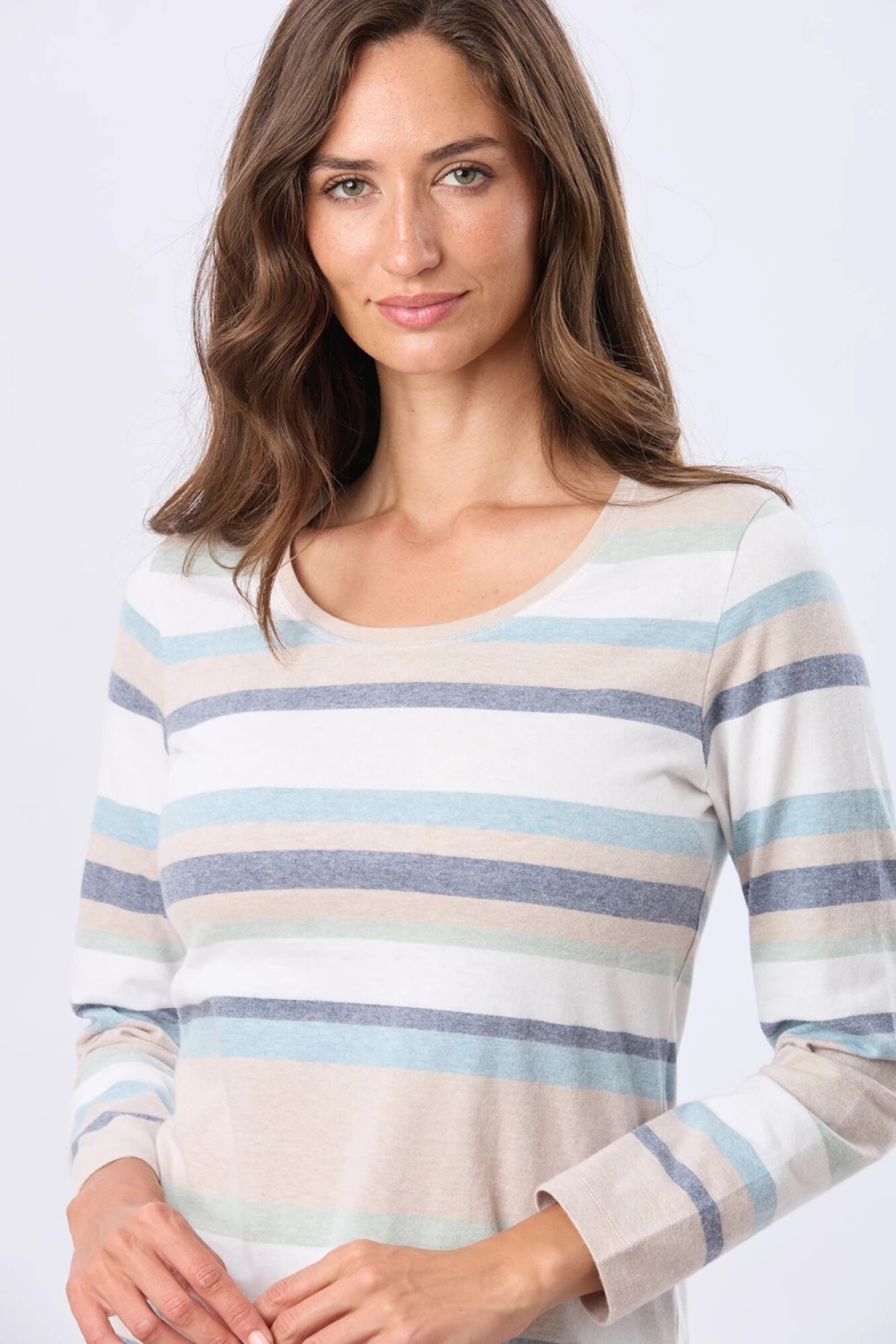 $ 872 T-shirt rayada de algodón con escote redondo.