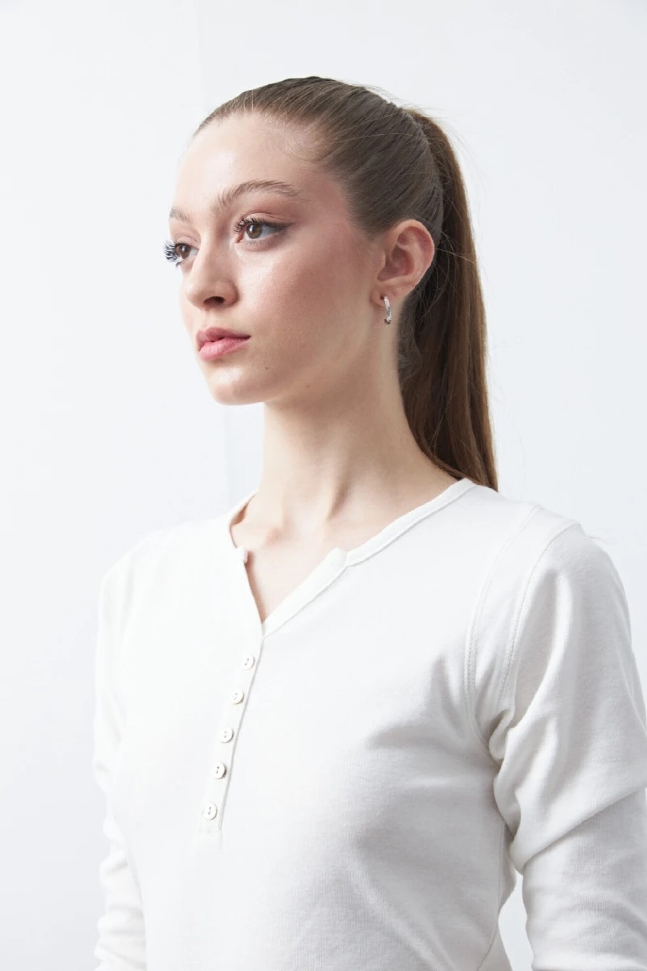$ 552 T-shirt en algodón manga 3/4 clásica con botones.
