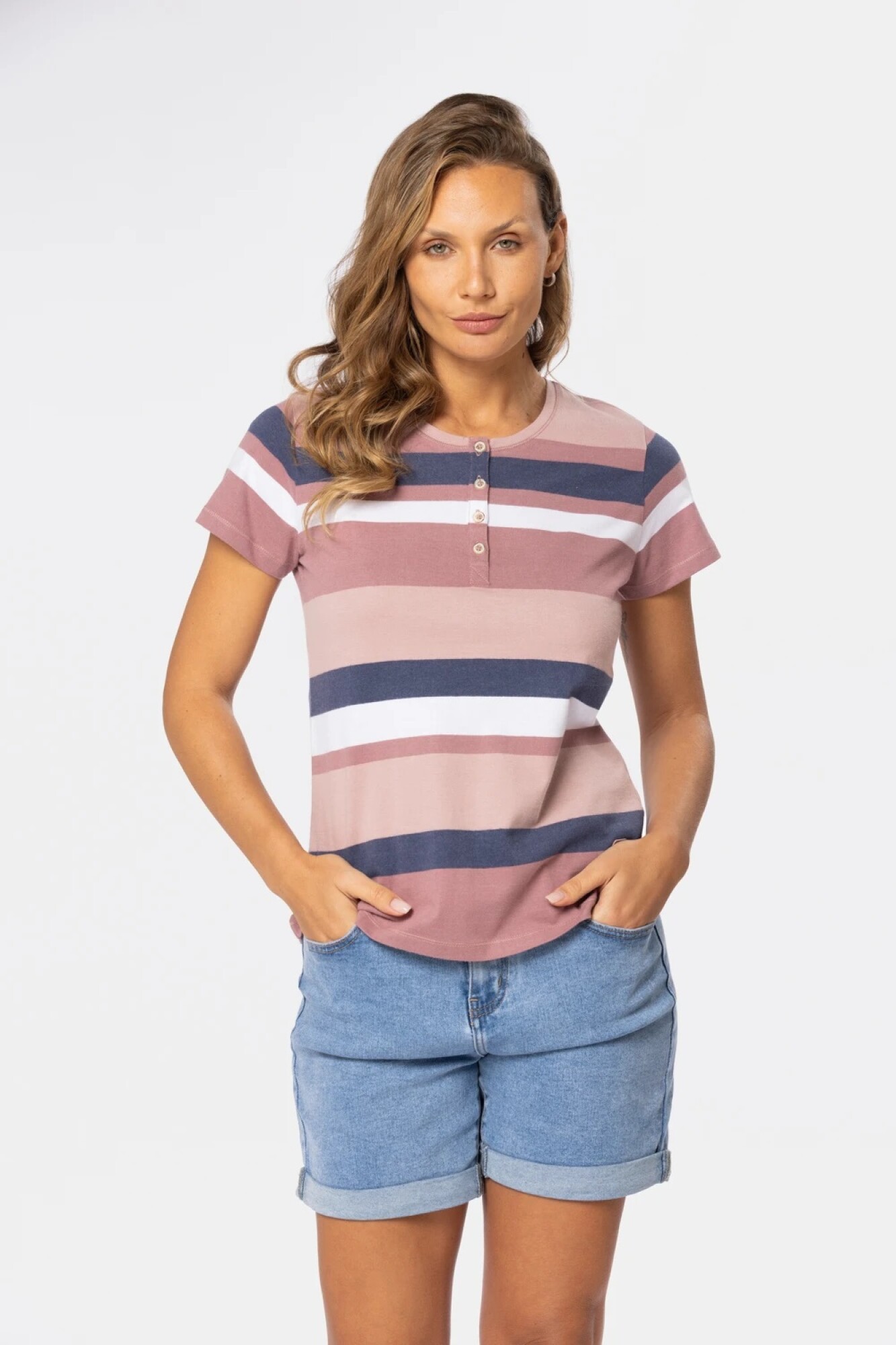 $ 1.000 Remera rayada manga corta , con botones personalizados