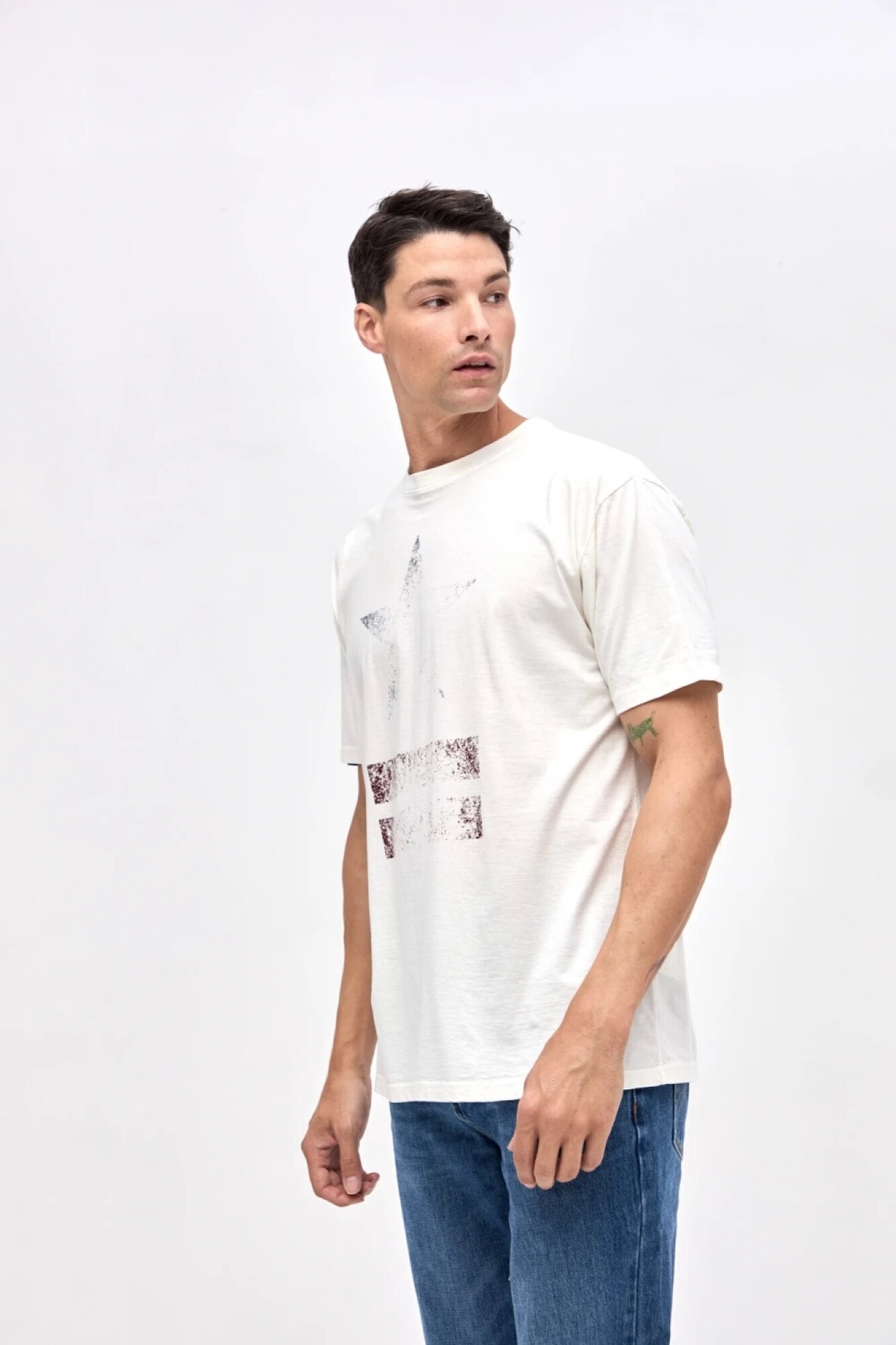 $ 952 T-shirt manga corta con arte central. Algodón lavado con textura extra suave. Calce relaxed.