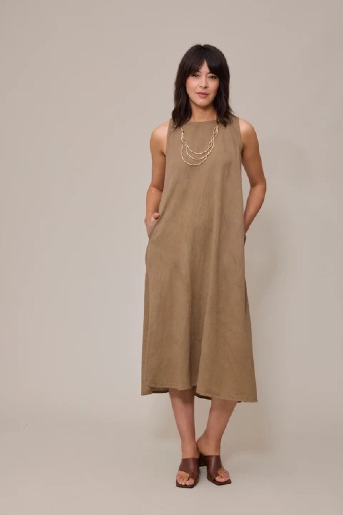 $ 1.592 Vestido largo de lindo sin mangas cuello base.