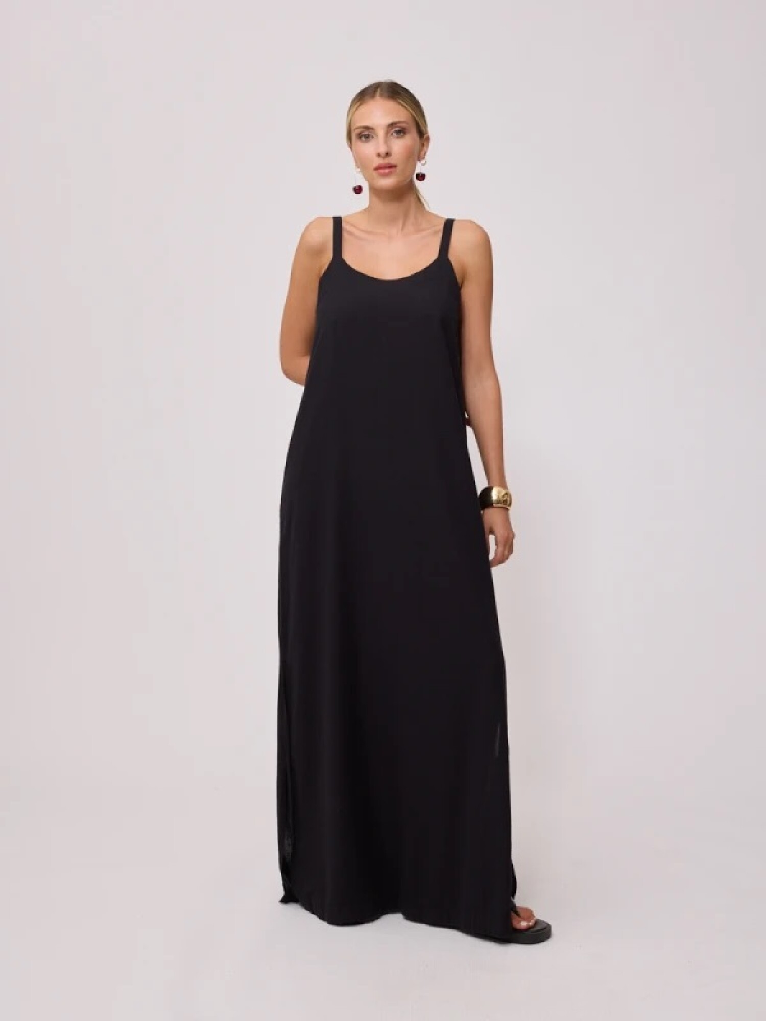 $ 1.352 Vestido de lindo liso largo bretel fino abierto en los laterales.